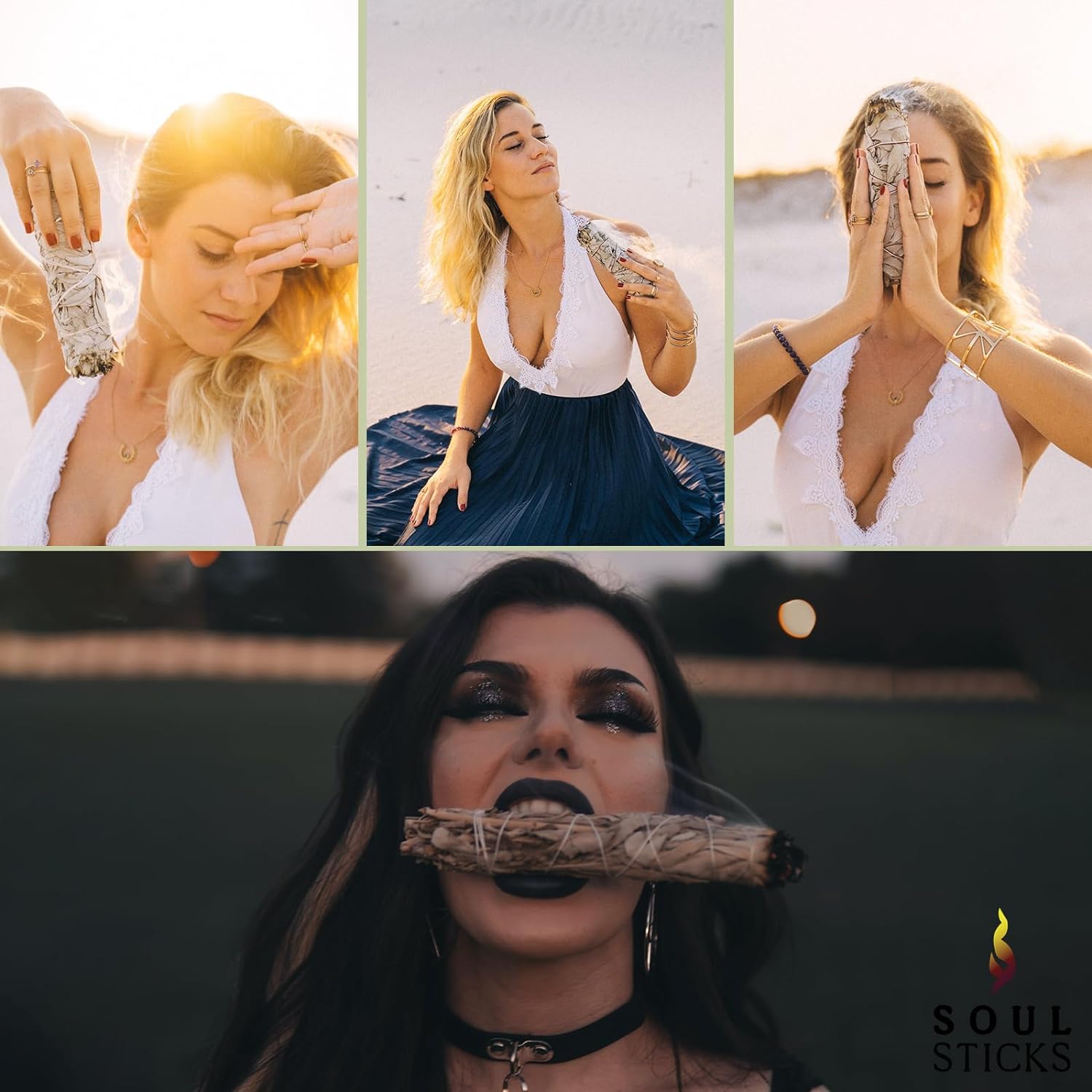SOUL STICKS 4 Inch 3 Pack Organic White Sage Smudge Smudging Sticks | Bulk Quantities for Home Cleansing, Good Energy Meditation & Smudging Rituals | Sustainably Sourced California White Sage Bundle