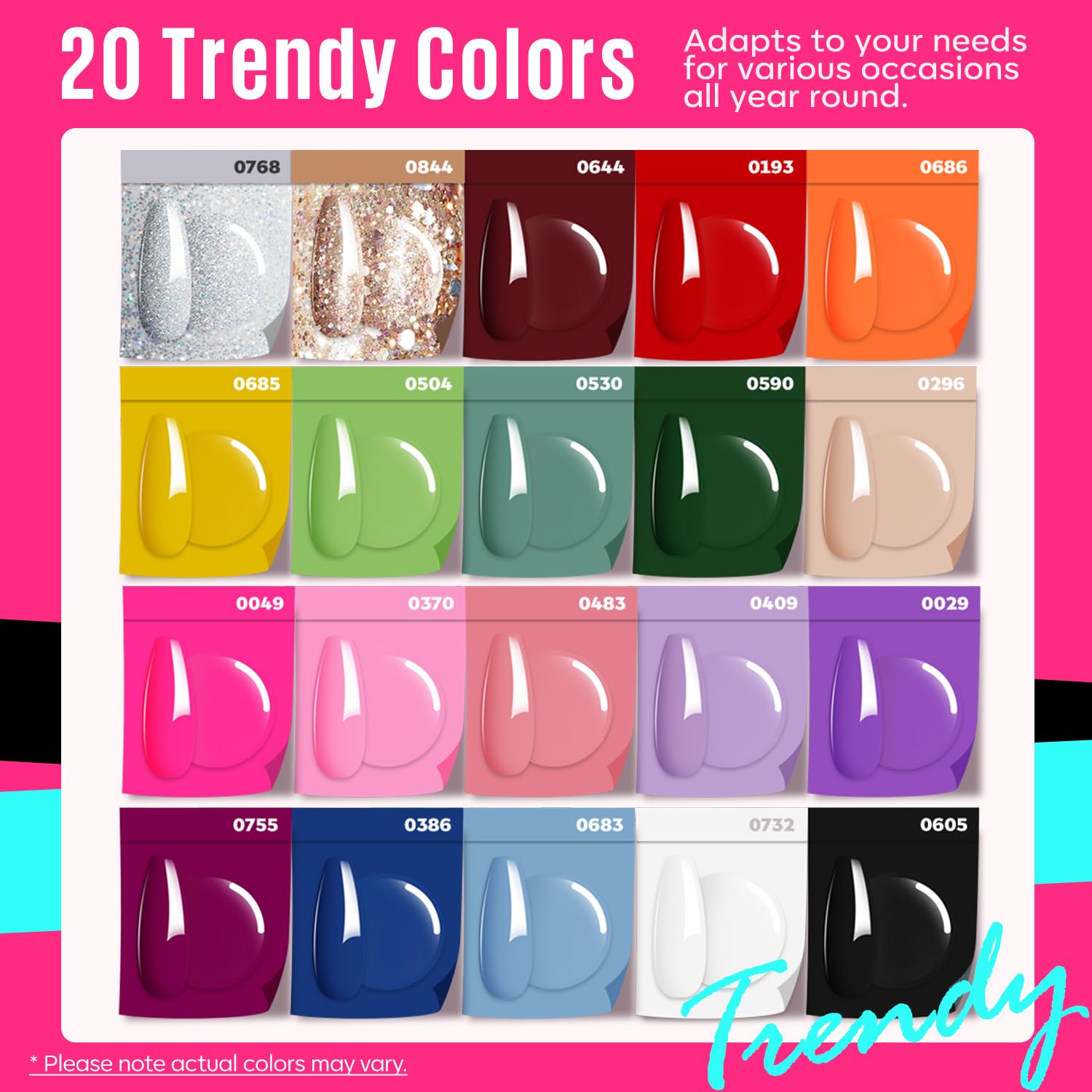 - Iconic and Trendsetting Colors: MEFA’s 2025-2026 collection offers 20 modern shades for any occasion. Includes popular colors like pink, glitter, purple, nude, skin tones, red, black, blue, purple, brown, and sparkle gel. Enjoy effortless color selection