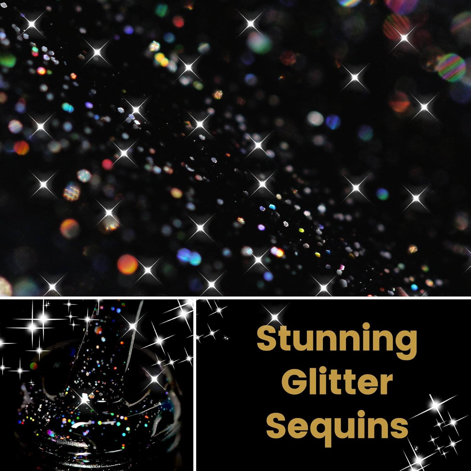 YTD Likomey Gel Nail Polish,15ml Sparkling Colorful Chunky Black Glitter Gel,Shiny Fall Winter Salon Home DIY Soak Off UV Manicure and Pedicure Varnish,CS024