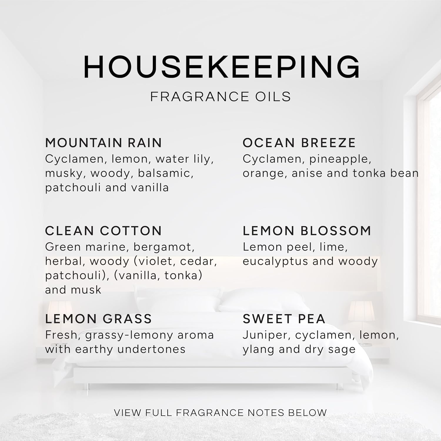 Eternal Essence Oils Housekeeping Set of 6 Premium Fragrance Oils - Includes Clean Cotton, Lemon Blossom, Lemon Grass, Sweet Pea, Ocean Breeze and Mountain Rain Scented Oils - 10ML