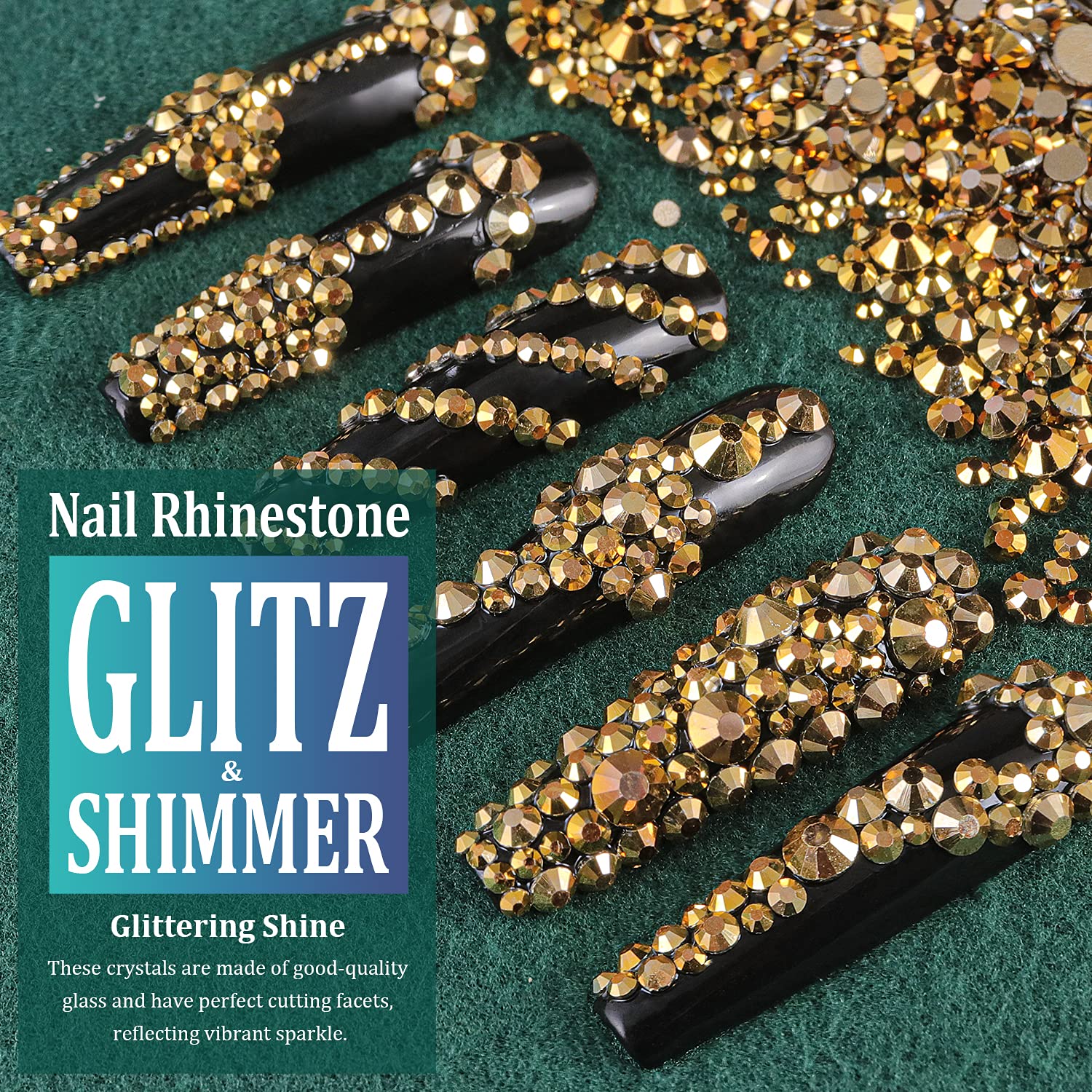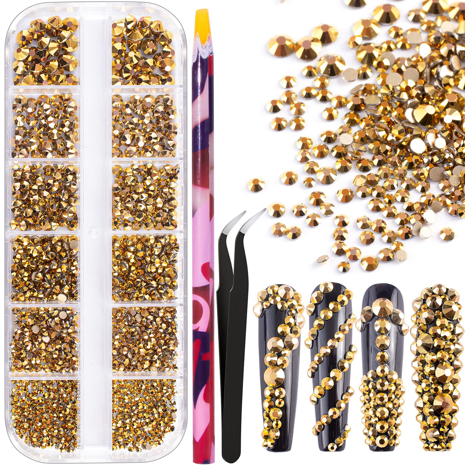 - ❤WHAT YOU WILL RECEIVE -- 1 Box of 6 Sizes Gold Round Glass Nail Crystal Rhinestones Beads (Totally About 1720 PCS); 1 PCS Rhinestone Picker Pencil; 1 PCS Tweezer. The Well Equipped Rhinestone Set Is Suitable for Both Professional Nail Technician and Inexperienced Starter for Nail Art.