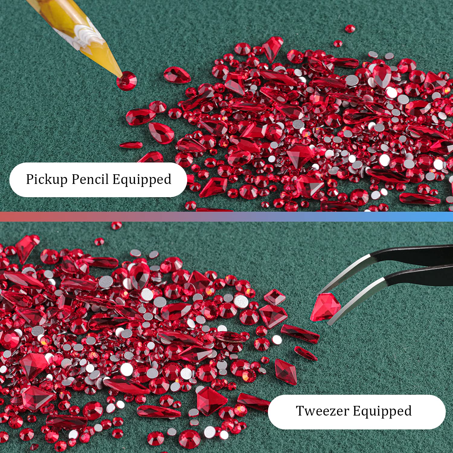 - ❤HELPFUL PICK-UP TOOLS -- The Tools Can Be Used for Multi-Function, including Round and Multi-shaped Crystals, or Flatback or Non-Flatback Crystals. After Applying Nail Polish, Just Simply Use the Equipped Tools ( Pickup Pencil + Tweezer ) to Pick Up the Crystals onto Your Nails to Create Your Fabulous DIY Designs! They Are Very Helpful in Picking Up Small Crystals. Just Make Sure You Make the Rhinestones Face up First Before You Start Working on Your Nails.