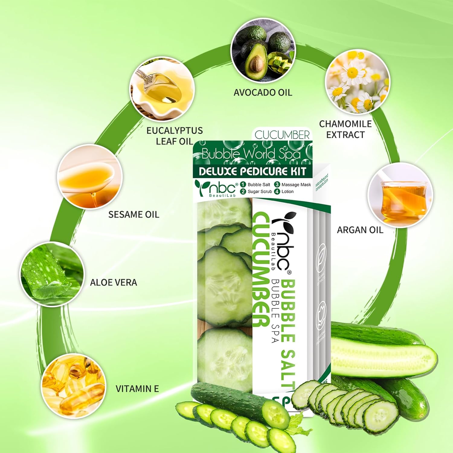 Pedicure Kit Foot Soak Set: Bubble Salt, Sugar Scrub, Massage Mask, Massage Lotion in a Box, 4 Step Foot Spa Kit for Dry Feet,Tired Feet(1 Set Cucumber)