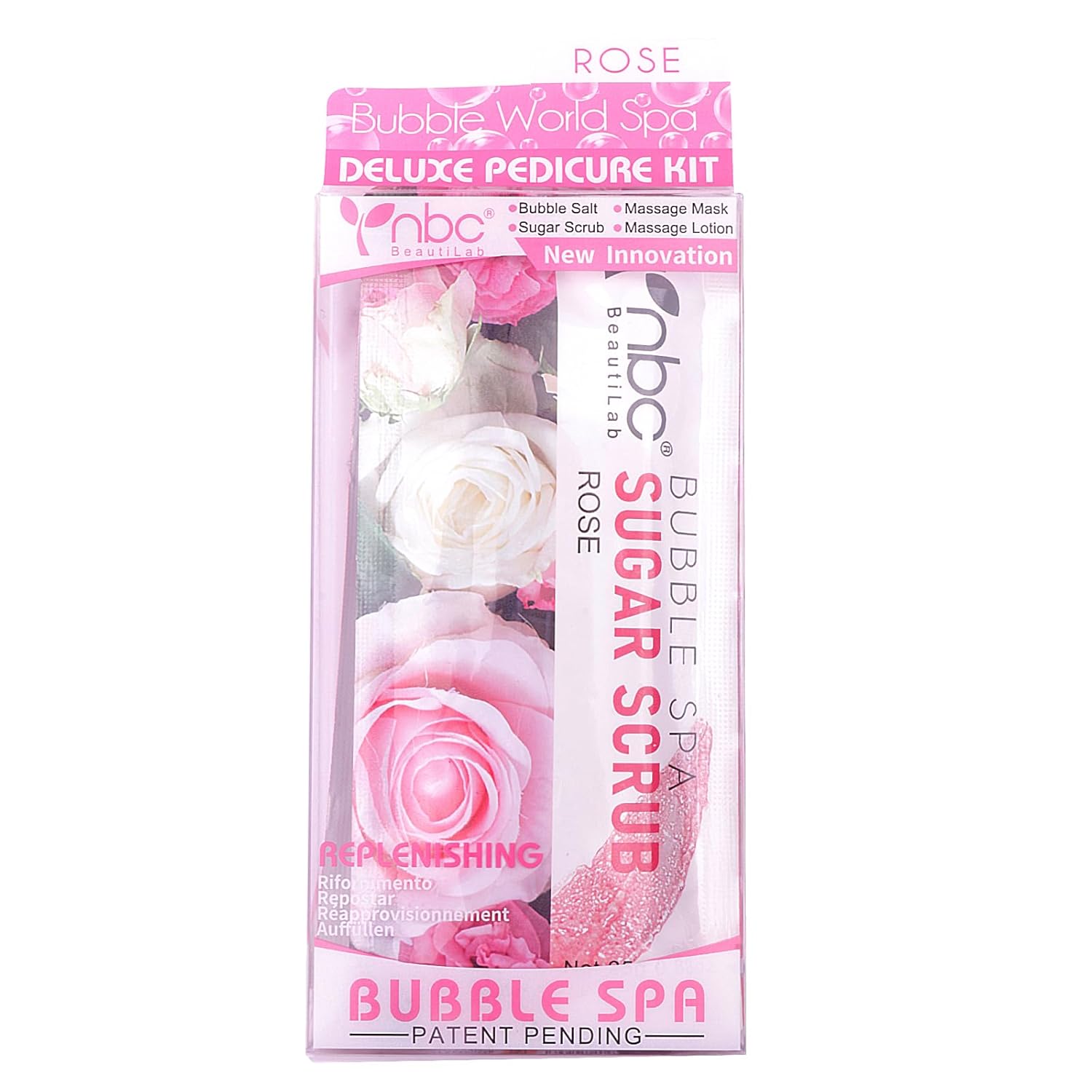 Pedicure Kit Foot Soak Set: Bubble Salt, Sugar Scrub, Massage Mask, Massage Lotion in a Box, 4 Step Foot Spa Kit for Dry Feet and Tired Feet(1 Set Rose