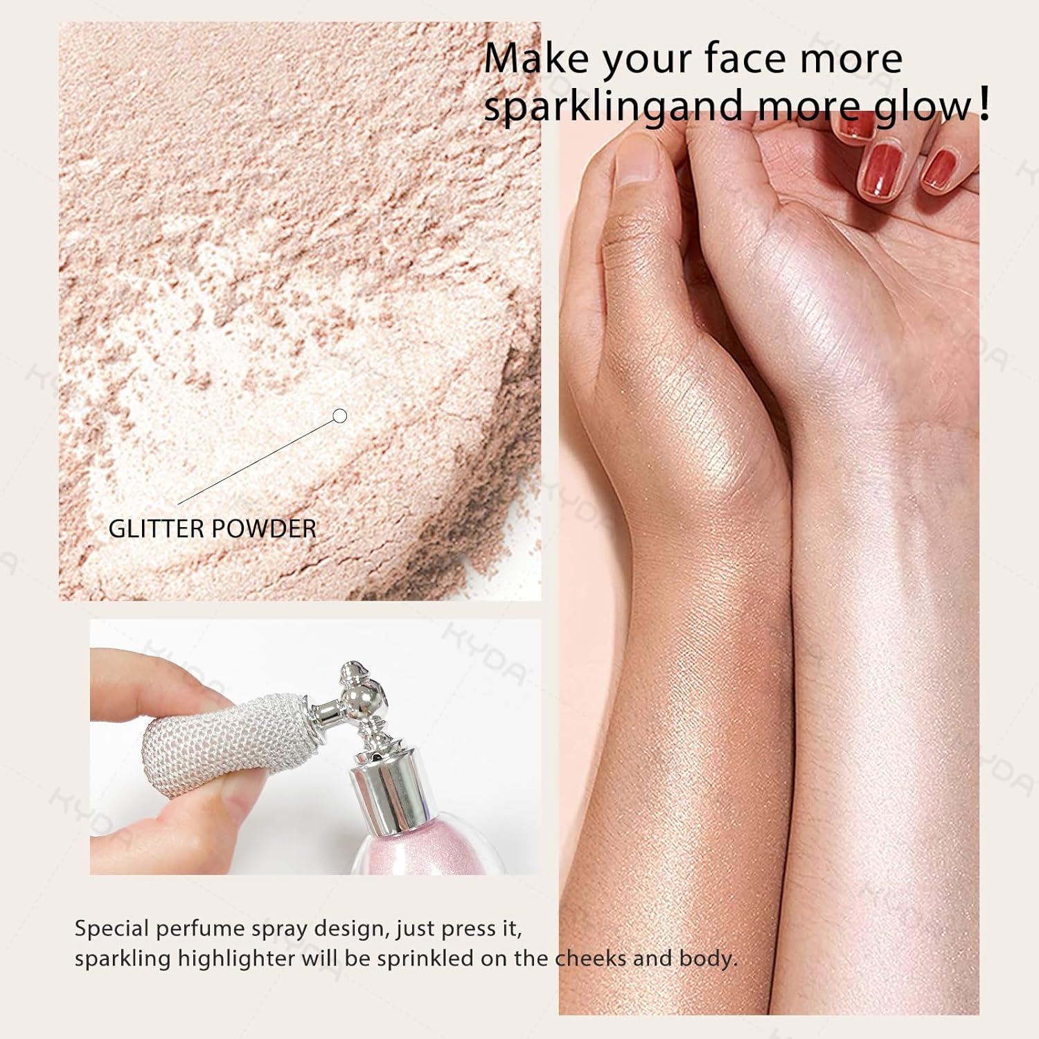 KYDA Highlighter Powder Spray, High Gloss Glitter Spray, Shimmer Sparkling Powder Makeup, for Face and Body Glitter Cosmetic-Pearl White