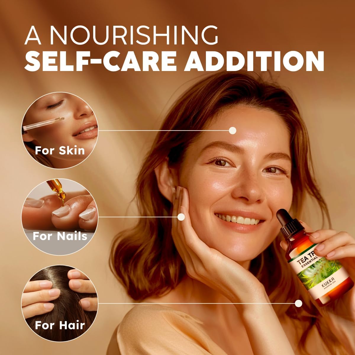 Kukka Essential Oils Tea Tree Oil for Skin, Hair, Nails & Toenails, Aromatherapy - 4 Fl Oz / 118 ml, DIY Soap Making Scents
