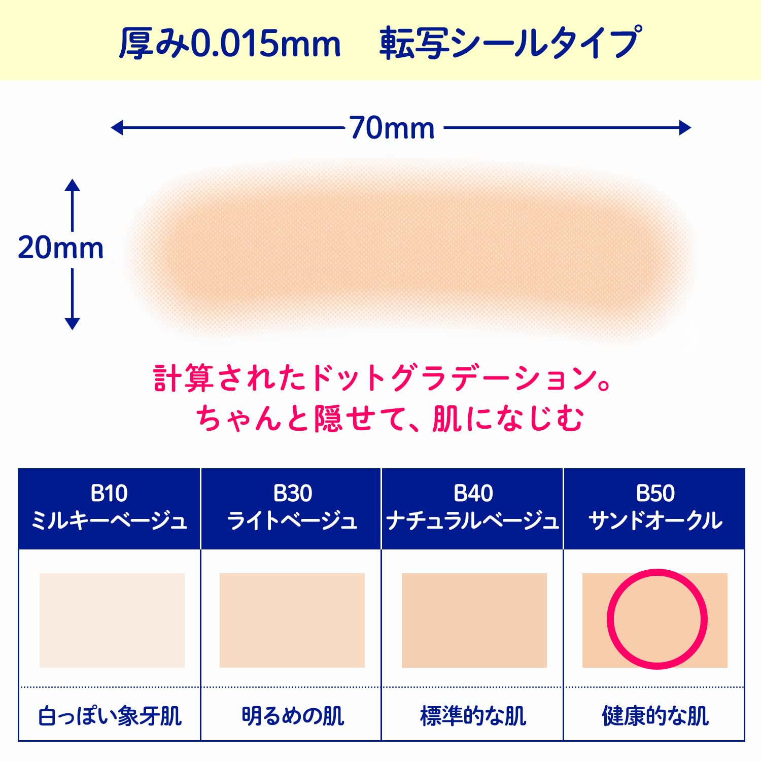 - Ultra-thin 0.015mm, fine dot gradation for excellent skin blending. Unnoticeable.