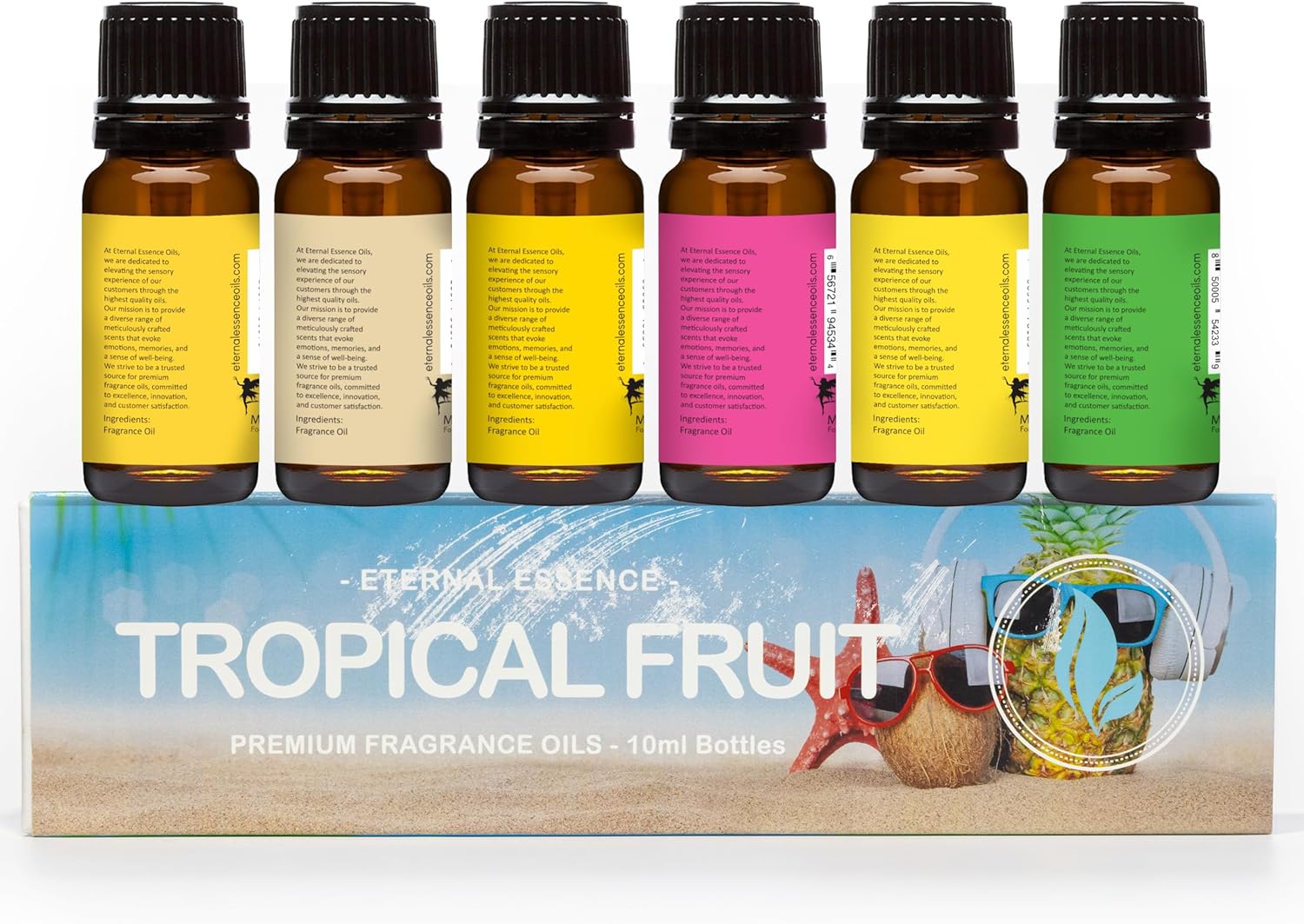 Eternal Essence Oils Tropical Fruit Set of 6 Premium Fragrance Oils - Includes Mango, Coconut Cream, Pineapple, Passion Fruit & Guava, Banana and Portuguese Pomelo Scented Oils - 10ML