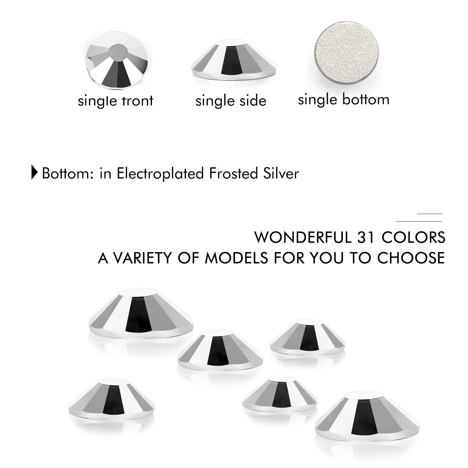 - Different Sizes Available:These rhinestones for crafts come in a wide range of sizes (1.6mm, 2mm, 2.4mm, 2.8mm, 3mm, 4mm, 4.8mm) to suit your different needs