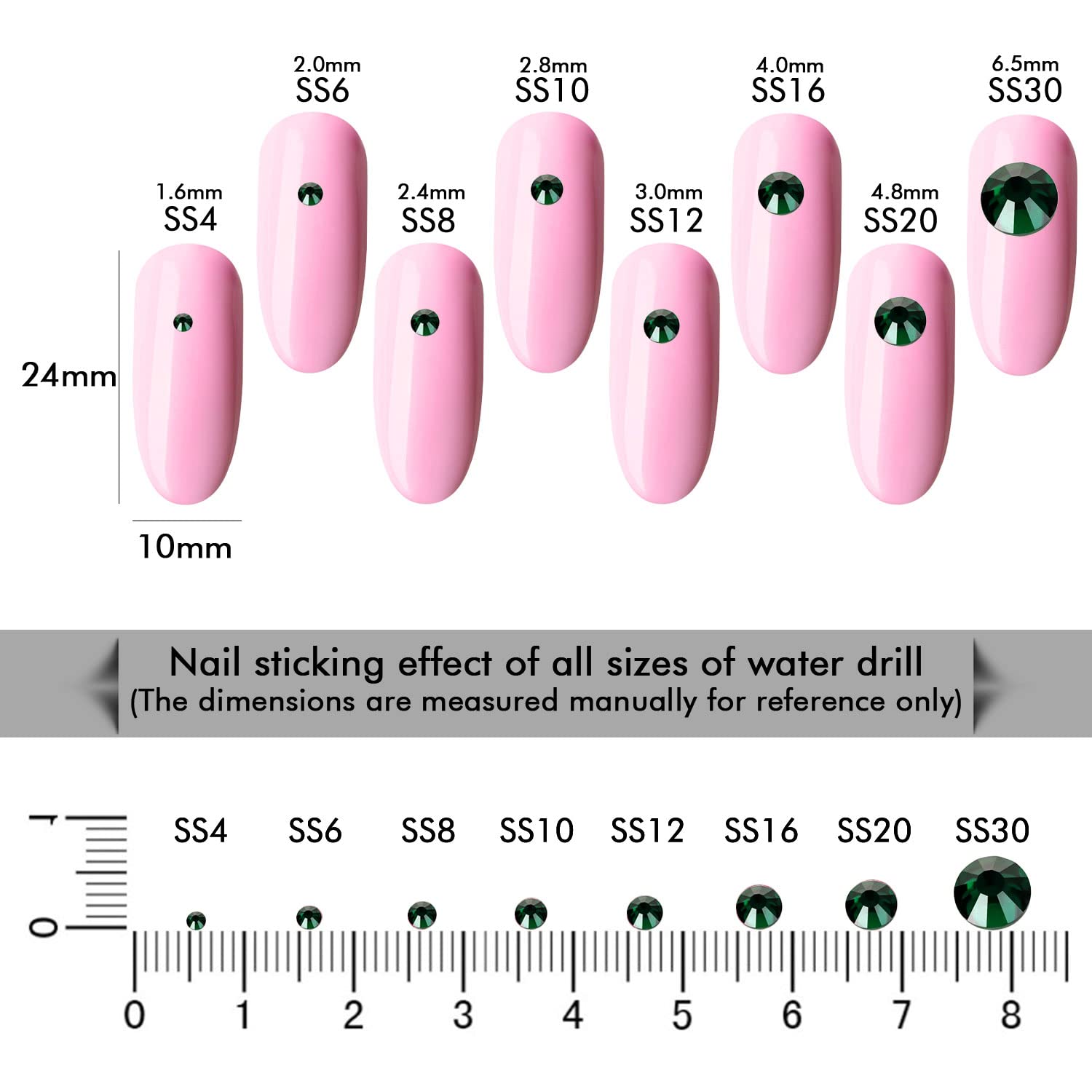 - Different Sizes Available:These rhinestones for crafts come in a wide range of sizes (1.6mm, 2mm, 2.4mm, 2.8mm, 3mm, 4mm, 4.8mm) to suit your different needs
