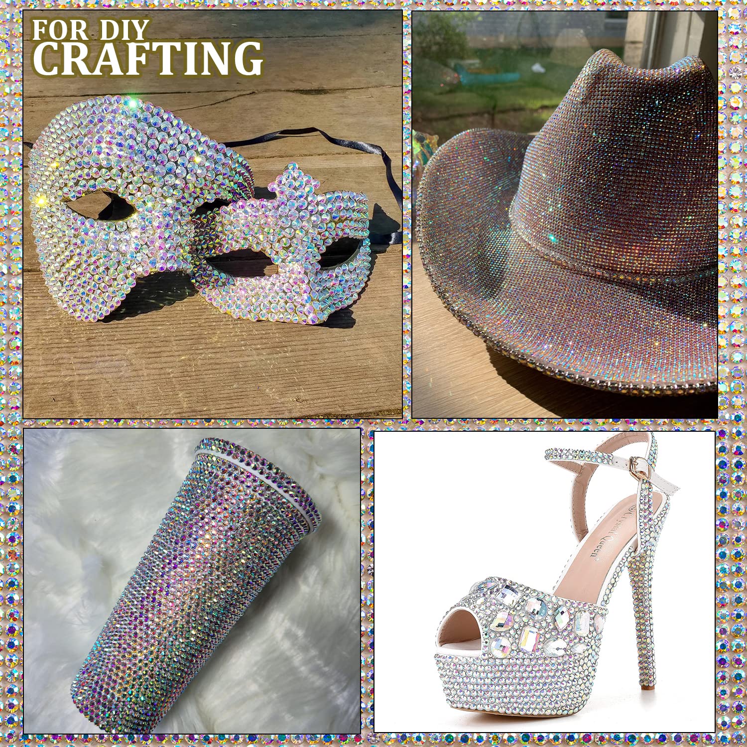 - ❤WIDE APPLICATION --The Crystal Iridescent Gems Nail Rhinestones Are Perfect for Creating 3D Nail Art or Decorating Jewelry, Makeup, Body Art, DIY Crafts, Wedding Dress or Shoes, Cell Phone Cases, Glasses, Greeting Cards, Bags, Guitars, Scrapbooks etc.
