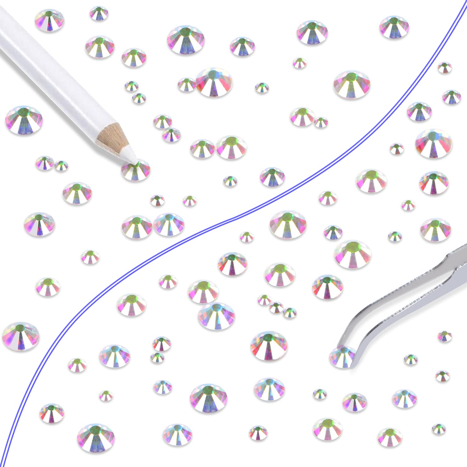 LPBeads 6000 Pieces Clear AB Non Hotfix Rhinestones 6 Sizes Round Crystal Glass Flat Back Rhinestones with Tweezers and Picking Pen for Nail Art Crafts Clothes Bags DIY
