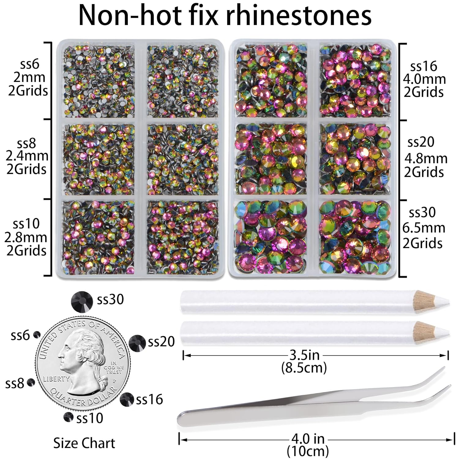 LPBeads 6000 Pieces Vitrail Medium Non Hotfix Rhinestones 6 Sizes Round Crystal Glass Flat Back Rhinestones with Tweezers and Picking Pen for Nail Art Crafts Bags DIY