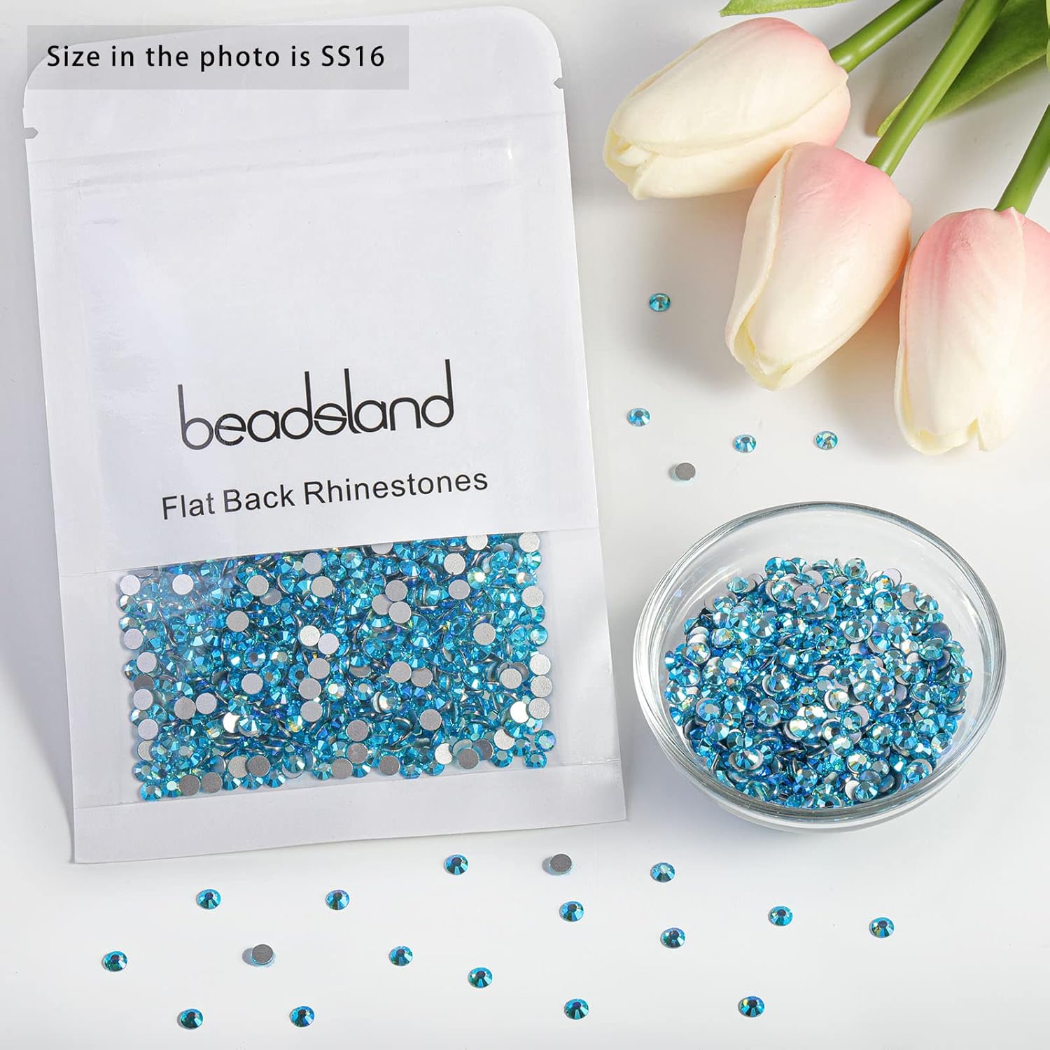 BEADSLAND Flat Back Crystal Rhinestones Round Gems,Aquamarine AB,3.8-4.0mm, SS16/1440pcs