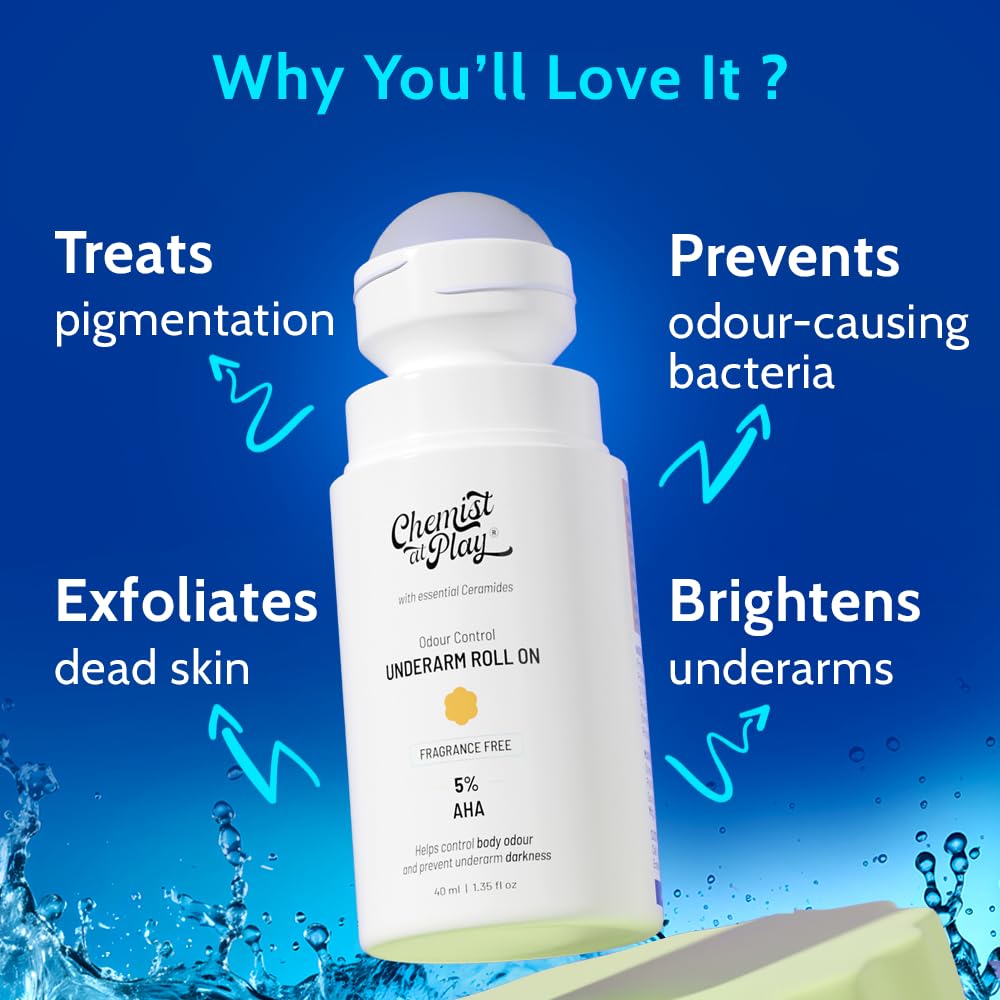 - GENTLE EXFOLIATION: Our underarm roll gently exfoliates the skin as itโs enriched with 4% Lactic Acid + 1% Mandelic Acid. This also helps even out the skin tone and fades spots/patches on the skin, if any.