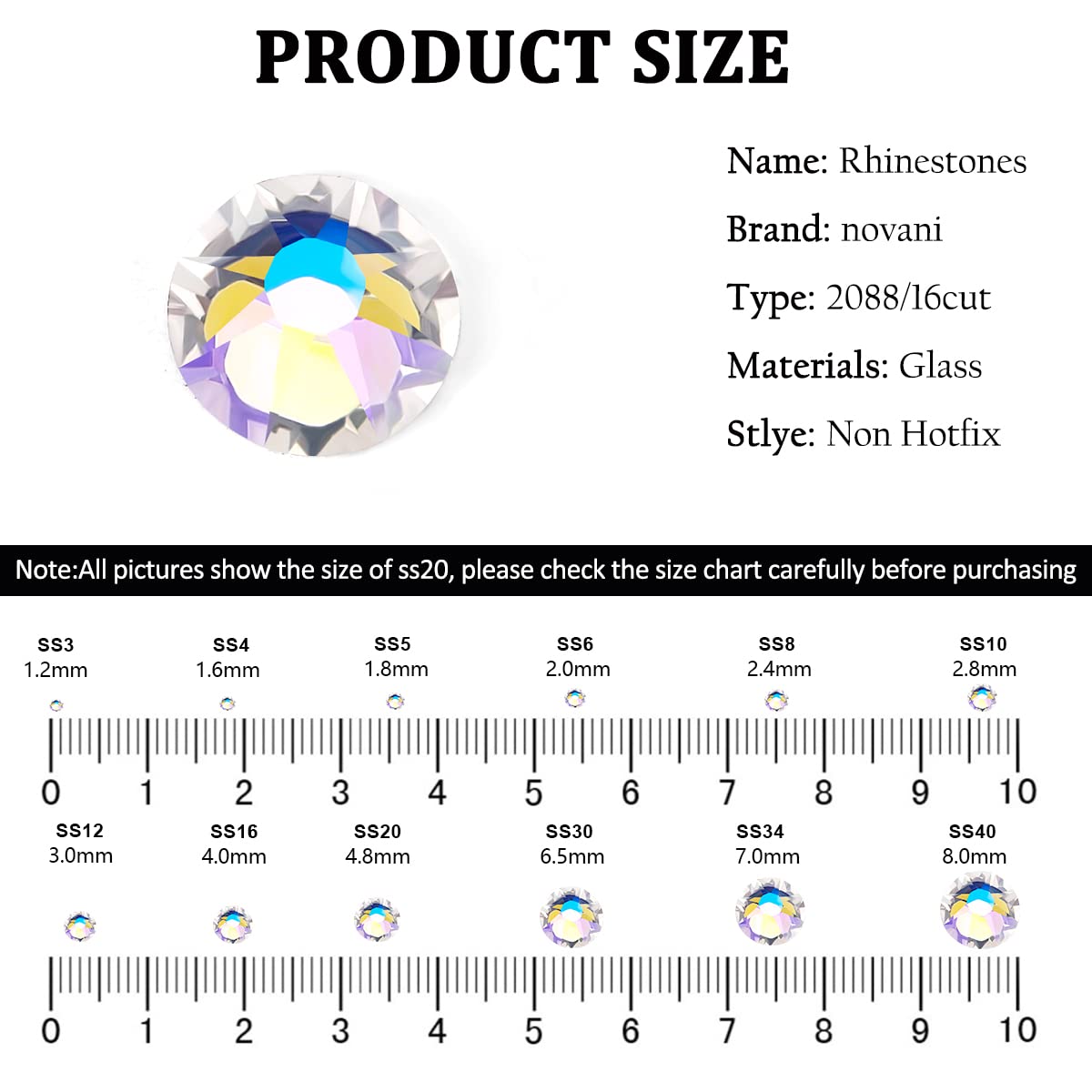 - ADVANCED CRYSTAL RHINESTONES: Novani style 2088 Flat Back rhinestones are the latest style of flat back rhinestones created by the leading rhinestone manufacturer. The style 2088 is an upgrade to the 2058 rhinestones and is the most popular flat back rhinestone. featuring 16 facets that create a unique starburst shape for extreme sparkle and shine.