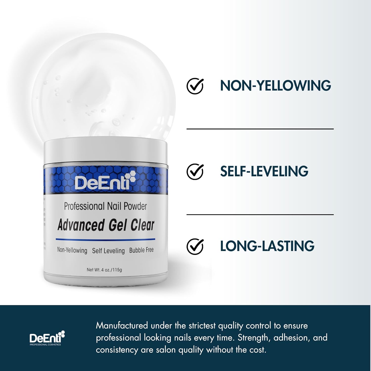 - PROFESSIONAL QUALITY NAIL POWDER polymer Advanced Gel Clear is crystal clear in color with a standard set speed. Perfect for at home manicures, nail painting and gel polish, our gel powder dip is long-lasting, chip resistant and a perfect addition to your acrylic nail dip kit.