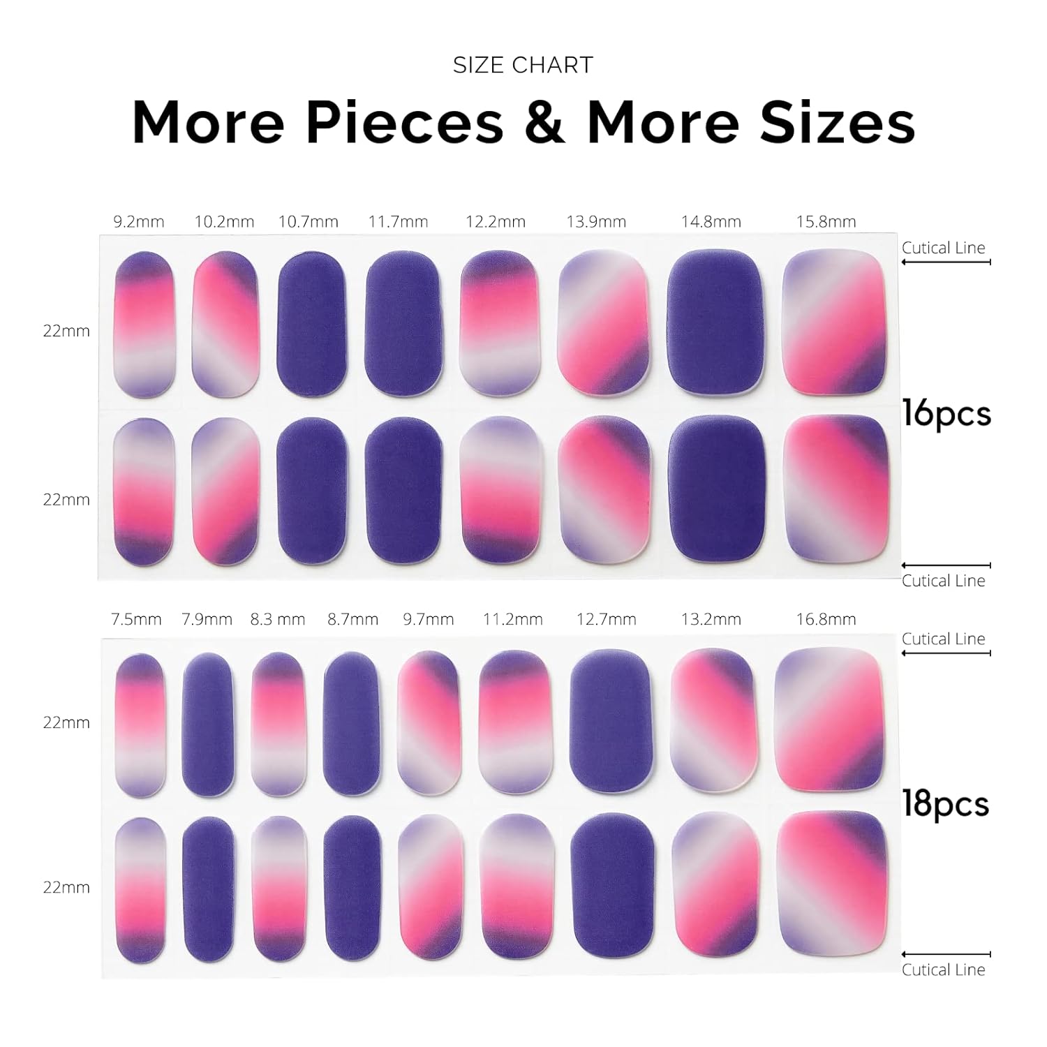 - ăWHAT YOU GETă34 Pieces gel polish strips in 17 sizes, 2 prep pads, 1 nail file, and 1 wooden stick. -Our semi cured nail strips are free from toxic, animal-derived, or harmful ingredients and are vegan, safe to use, and odorless. A perfect cost & time-saving DIY manicure kit.