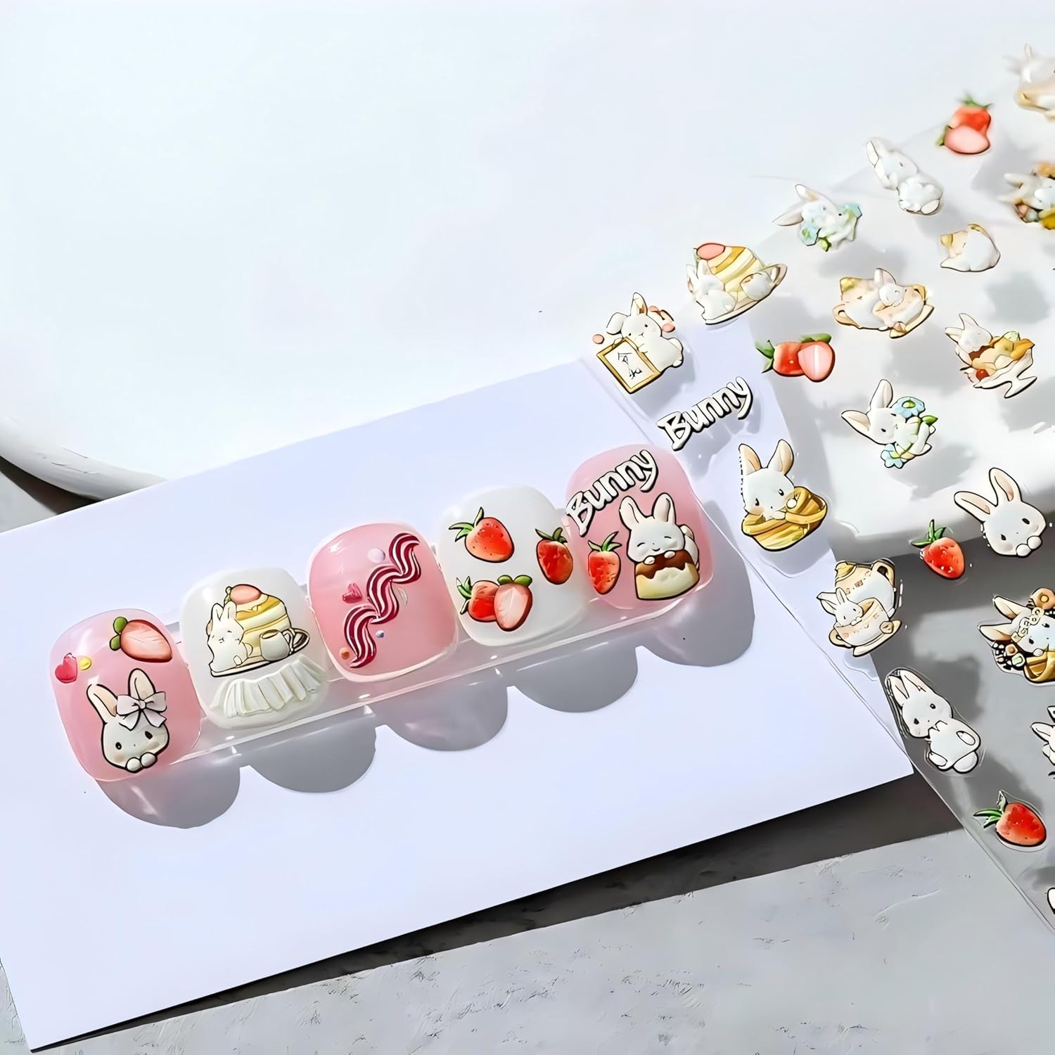 Dedyel Cute Nail Stickers 5D Embossed Cartoon Kawaii Animal Self-Adhesive Nail Decals for Women Girls Kids Nail Art Decoration