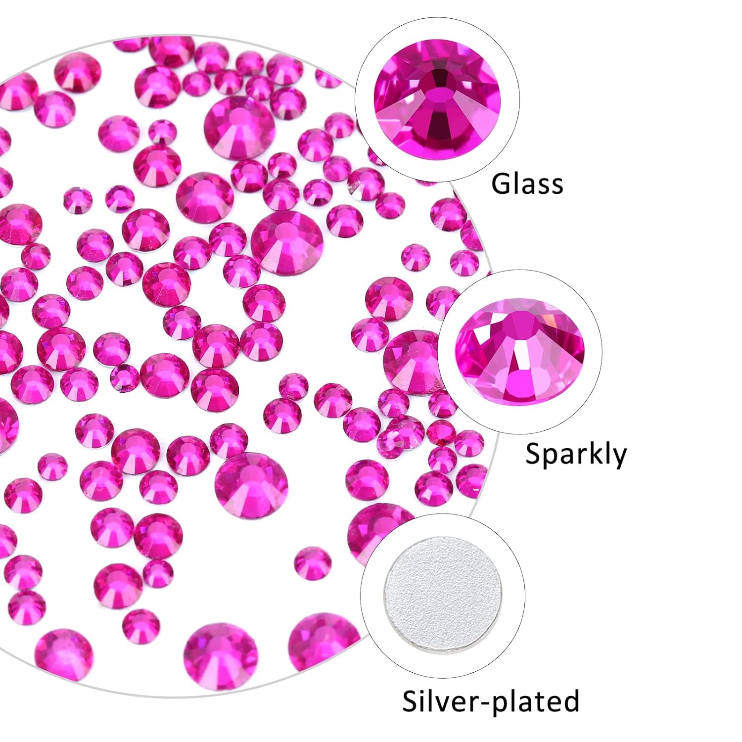 - 💎Material: glass/artificial crystal. The surface has a high-precision section, multi-faceted cutting, high brightness and high gloss. Flat bottom, round shape, silver plated back, non-allergenic. The color runs through the rhinestones without fading.