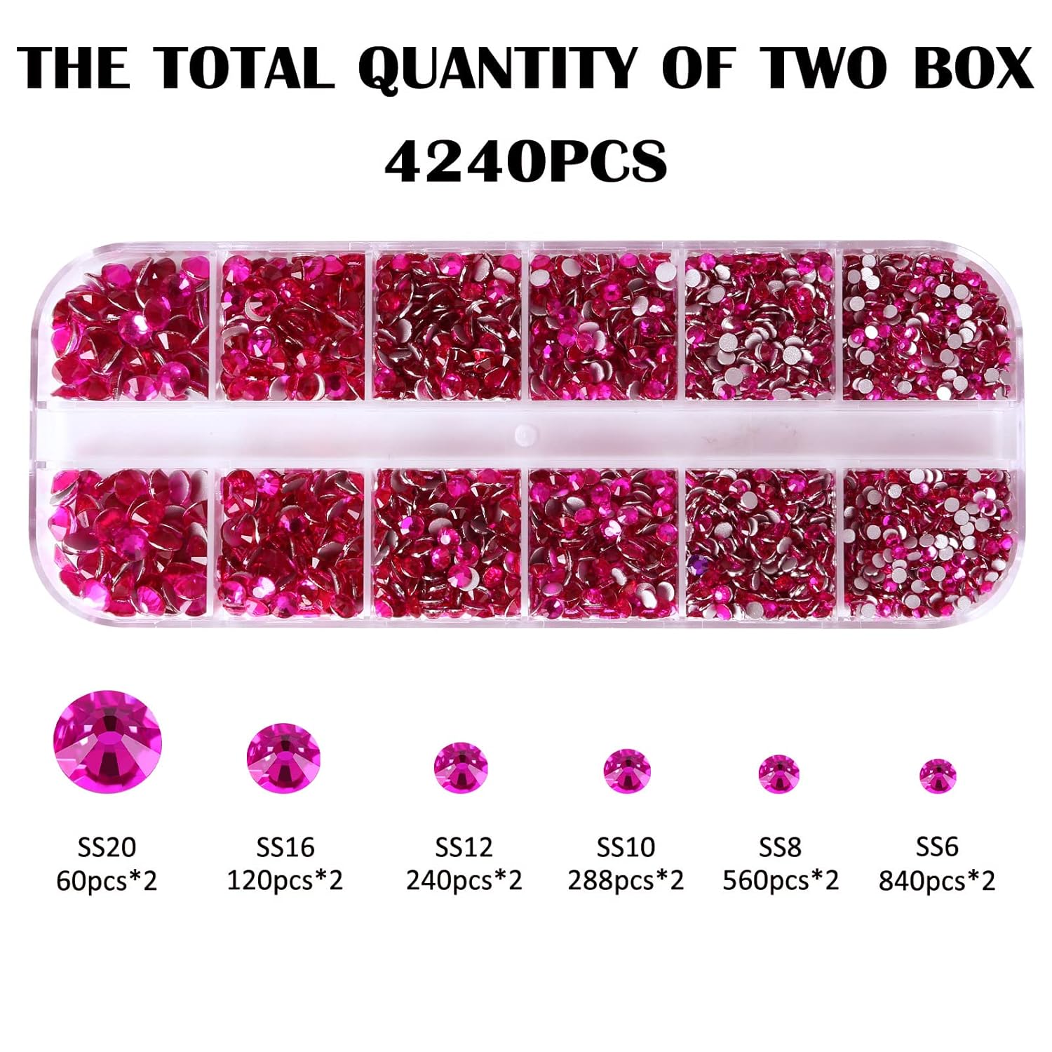 4240Pcs Peach Flatback Rhinestones 6 Sizes Crystal Diamonds for Nail Art Crafts Clothes Shoes with Tweezers and Picking Pen