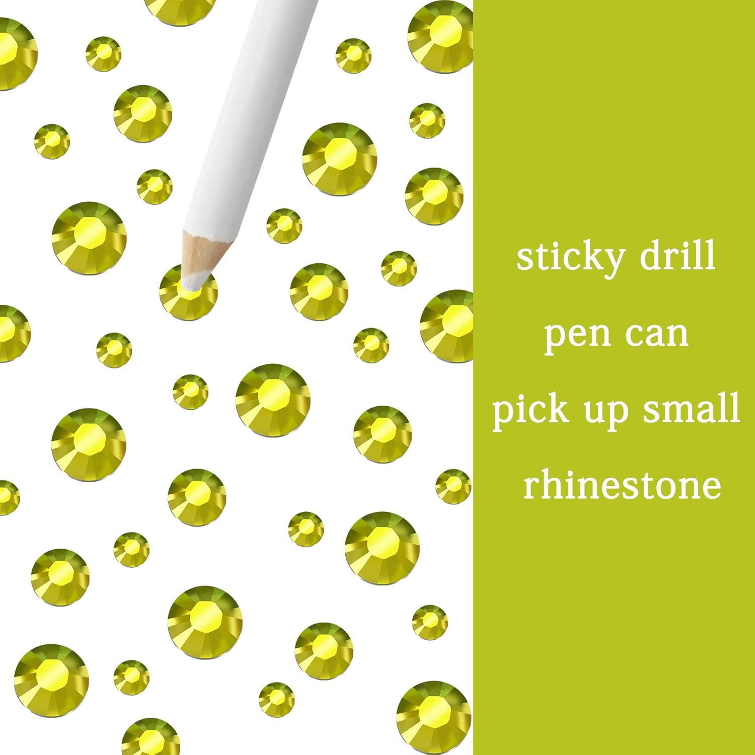 - 3 Sizes Rhinestones Set with Pick Up Pen: 2050 pcs per box. Round flat backs &Non Hotfix, SS10 (3mm) 1100PCS, SS16 (4mm) 600PCS / SS20(5mm) 350PCS.