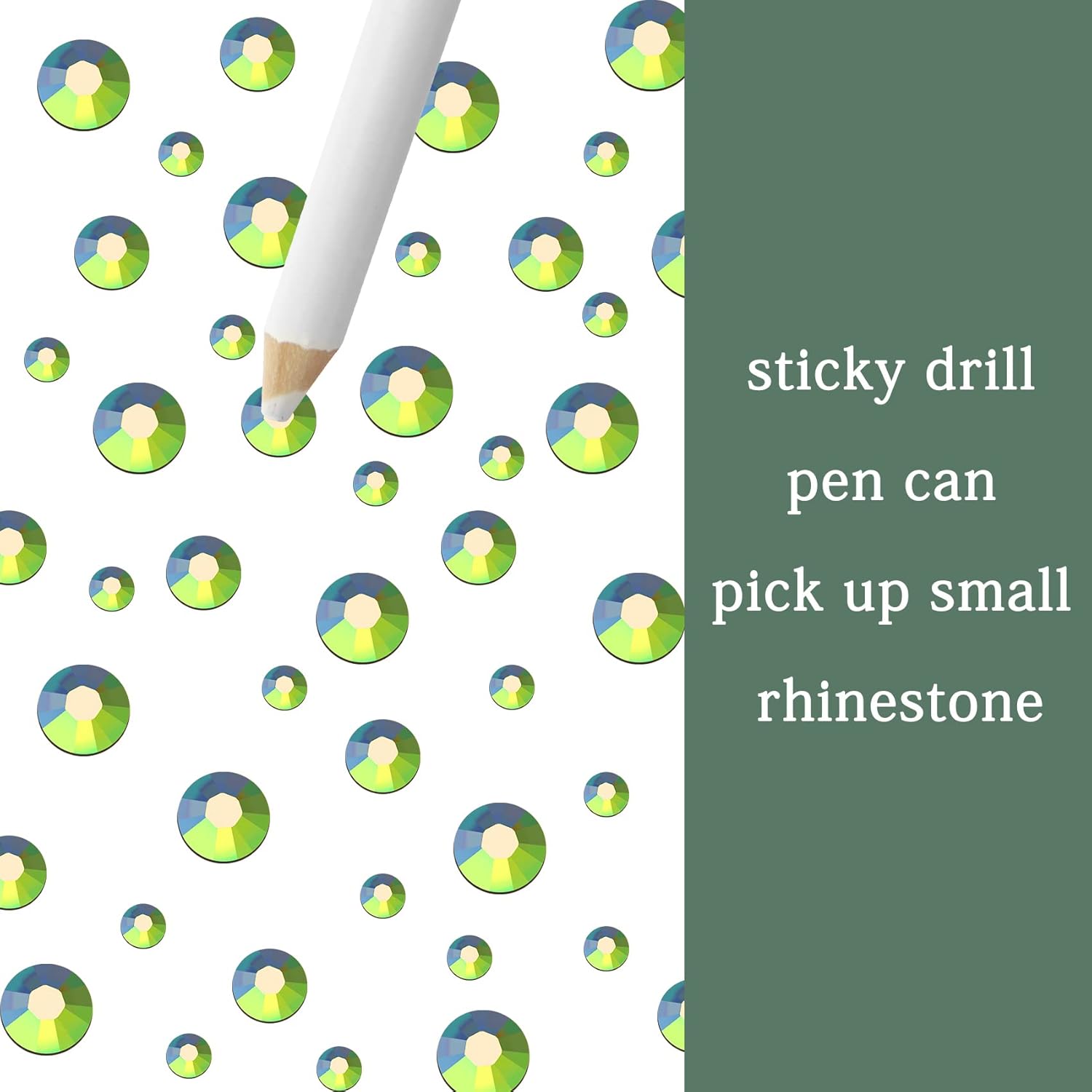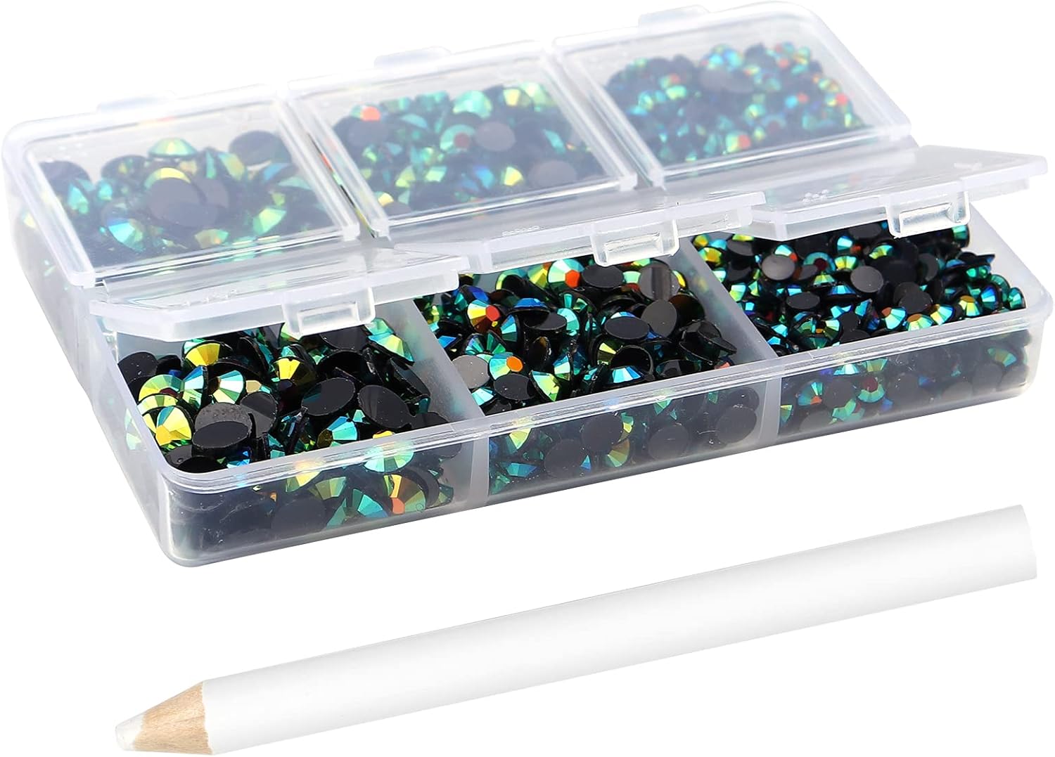 - 3 Sizes Rhinestones Set with Pick Up Pen: 2050 pcs per box. Round flat backs &Non Hotfix, SS10 (3mm) 1100PCS, SS16 (4mm) 600PCS / SS20(5mm) 350PCS.