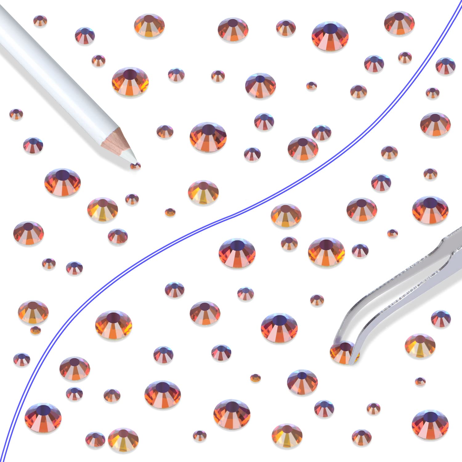 - Approx 6000 pcs of good quality sparkly flatback glass rhinestones with tweezers and 2 picker wax pencils help you easily pick up and set rhinestones in all your jewelry.