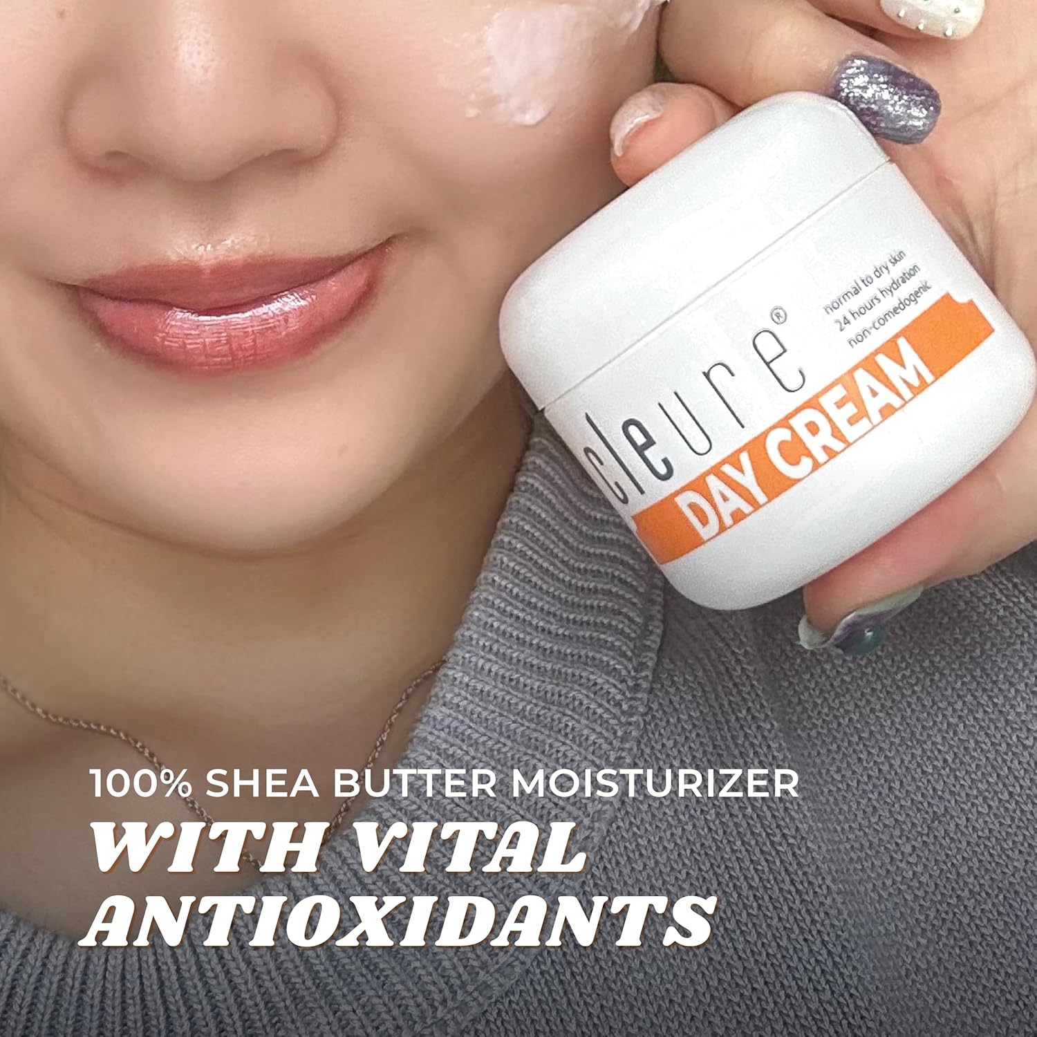 Cleure Anti-Aging Day Cream & Facial Moisturizer w/Pure Shea Butter for Sensitive Skin - Fragrance Free, Gluten, Salicylate and Paraben Free (2 oz, Pack of 2)
