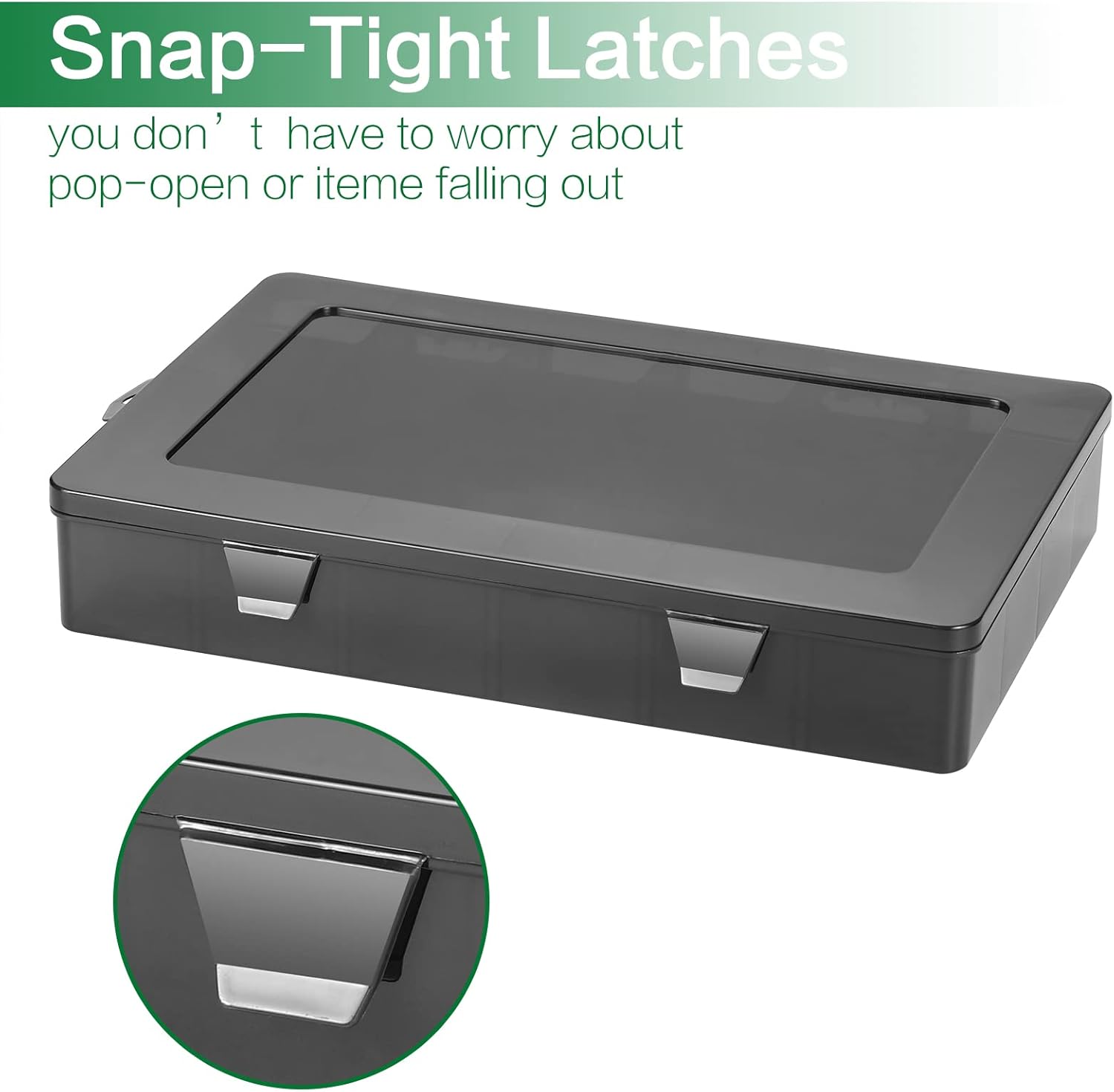 Large 24 Grids Plastic Organizer Box Adjustable Dividers,Clear Storage Box for Jewelry, Art DIY Crafts, Washi Tapes, Beads and Small Parts(Black,2Pack)