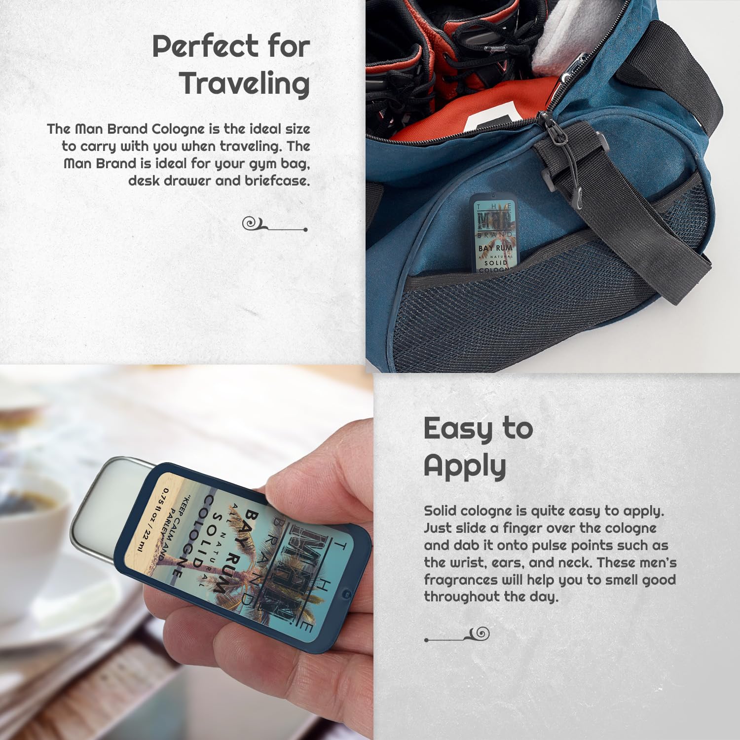 - Wax Cologne with fragrance that lasts: Unlike traditional liquid colognes that evaporate quickly, our wax cologne for men clings to your skin, releasing its lasting manly cologne throughout the day.