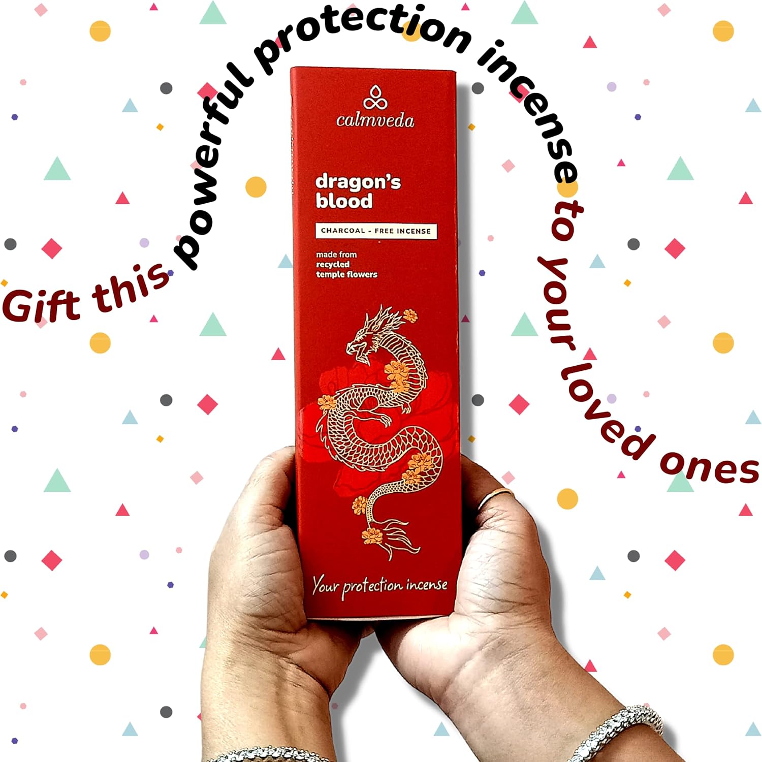 - Scent : Dragons Blood Incense- Charcoal Free