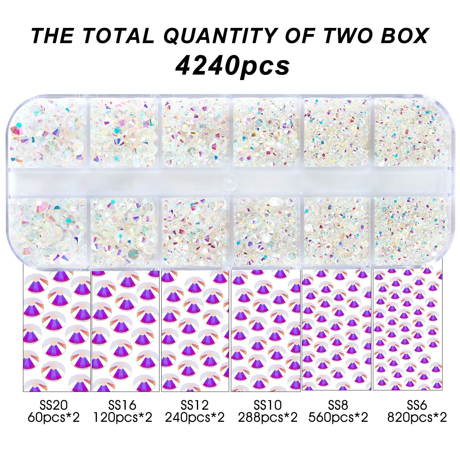 4240Pcs Transparent Ab Flatback Rhinestones 6 Sizes Crystal Diamonds for Nail Art Crafts Clothes Shoes with Tweezers and Picking Pen