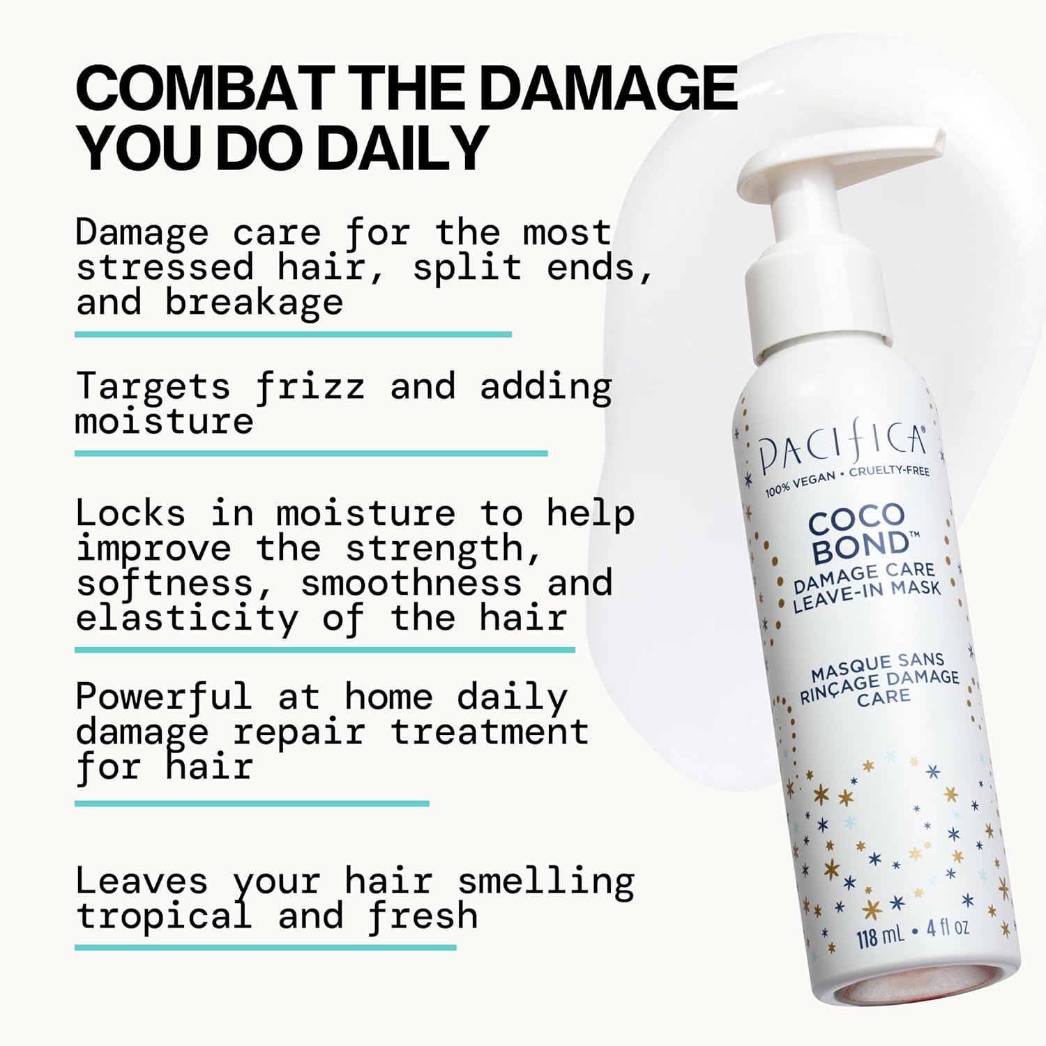 PACIFICA Beauty, Coco Bond Damage Care Leave-In Repair Mask Treatment, Dry & Damaged Hair from Bleach, Color, Chemical Services, Chlorine, & Heat, Coconut, Vegan