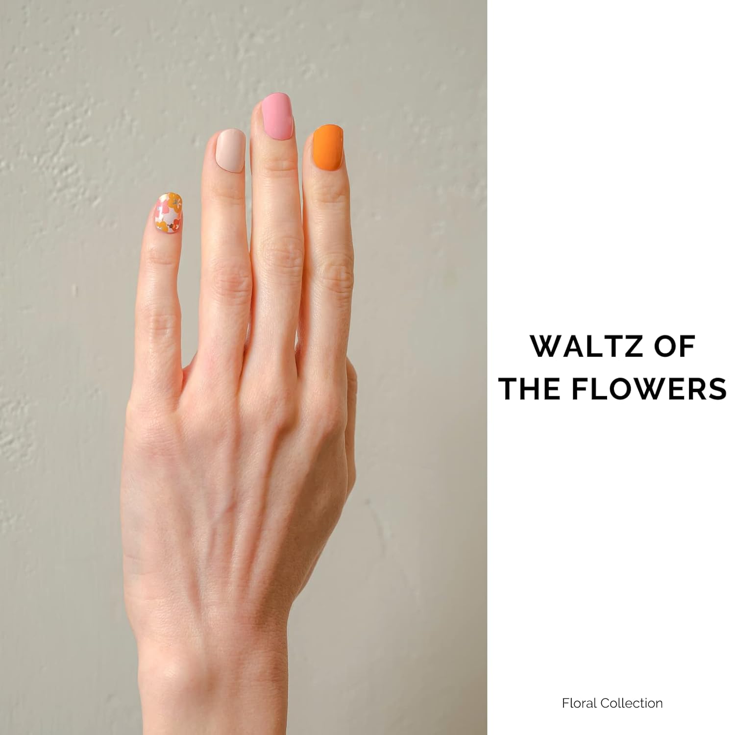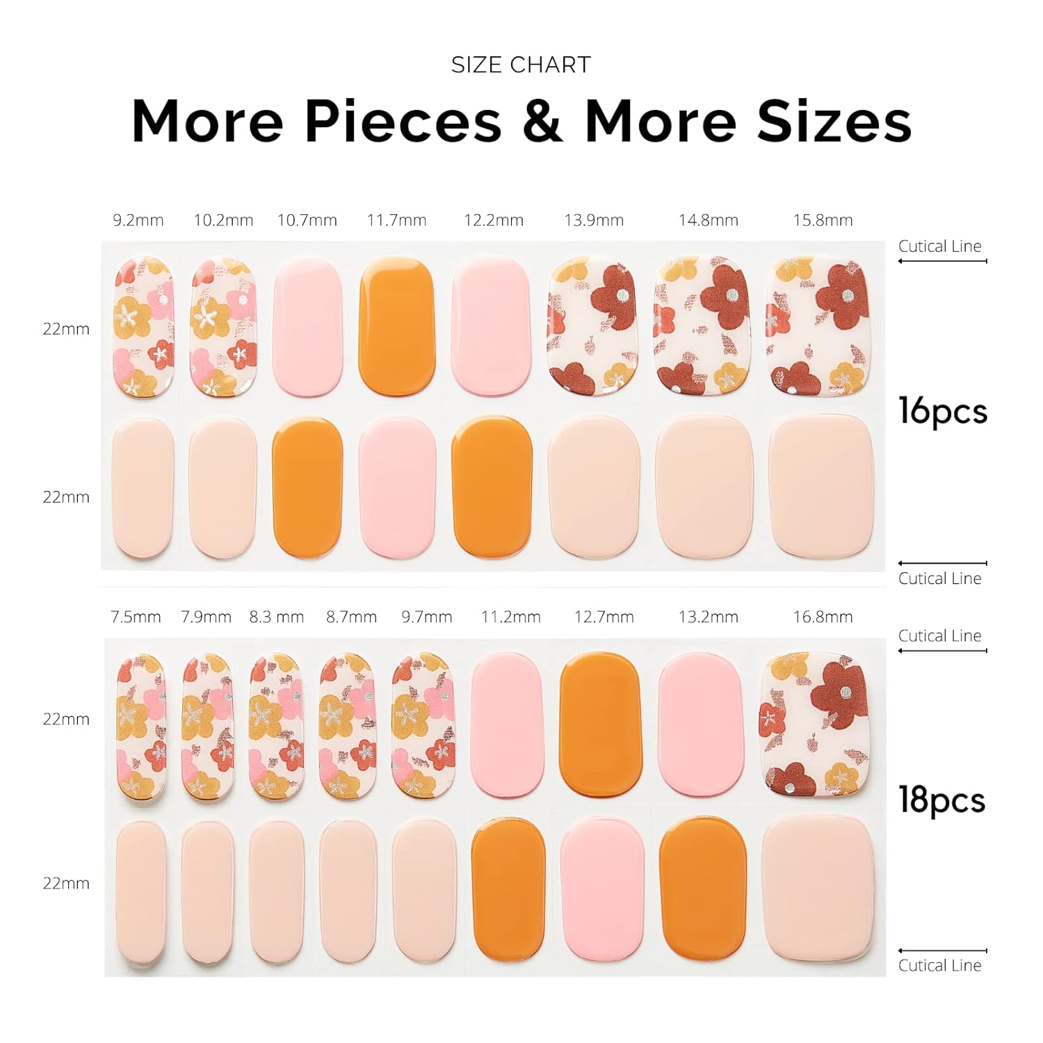 NAILOG Semi Cured Gel Nail Strips, 34 pcs Salon-Quality Stickers, Long Lasting Wraps with Soft Gel Finish | Waltz of The Flowers