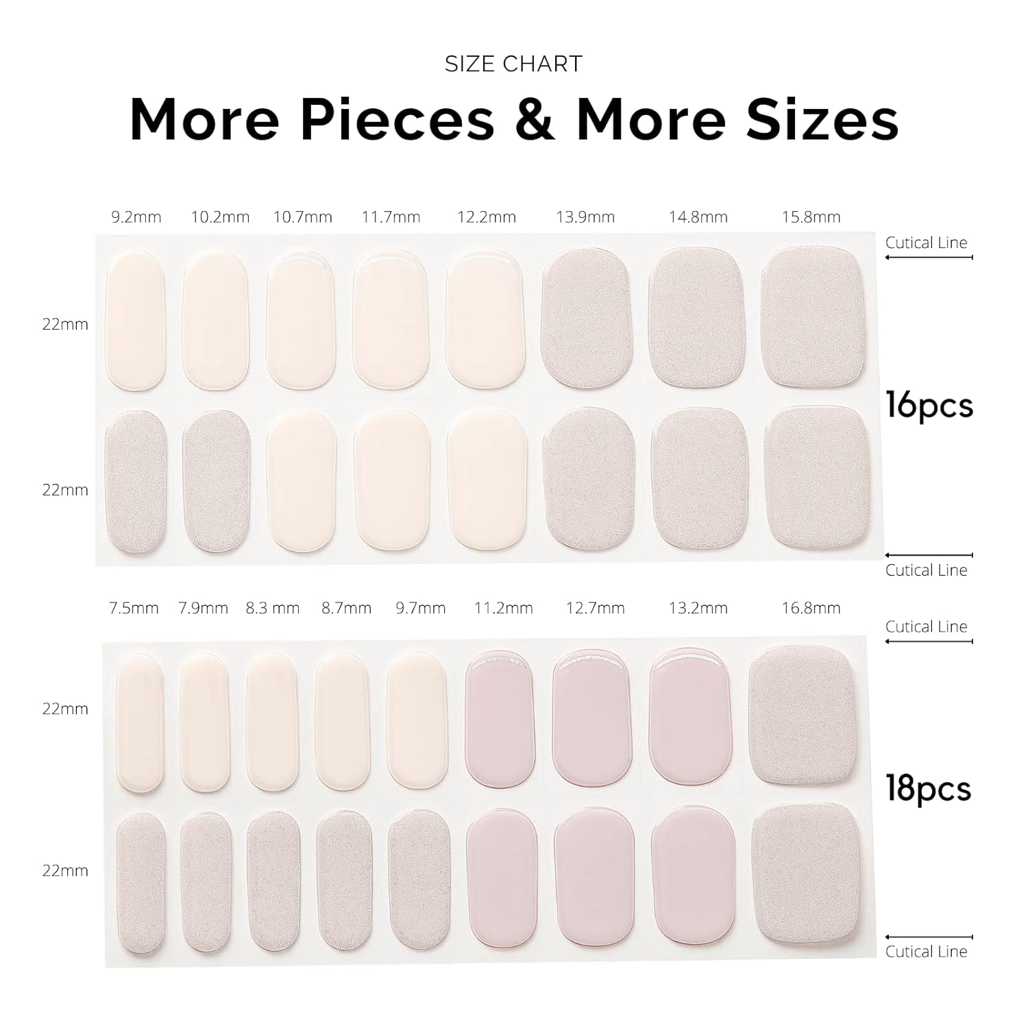 - 【WHAT YOU GET】34 Pieces gel polish strips in 17 sizes, 2 prep pads, 1 nail file, and 1 wooden stick. -Our semi cured nail strips are free from toxic, animal-derived, or harmful ingredients and are vegan, safe to use, and odorless. A perfect cost & time-saving DIY manicure kit.