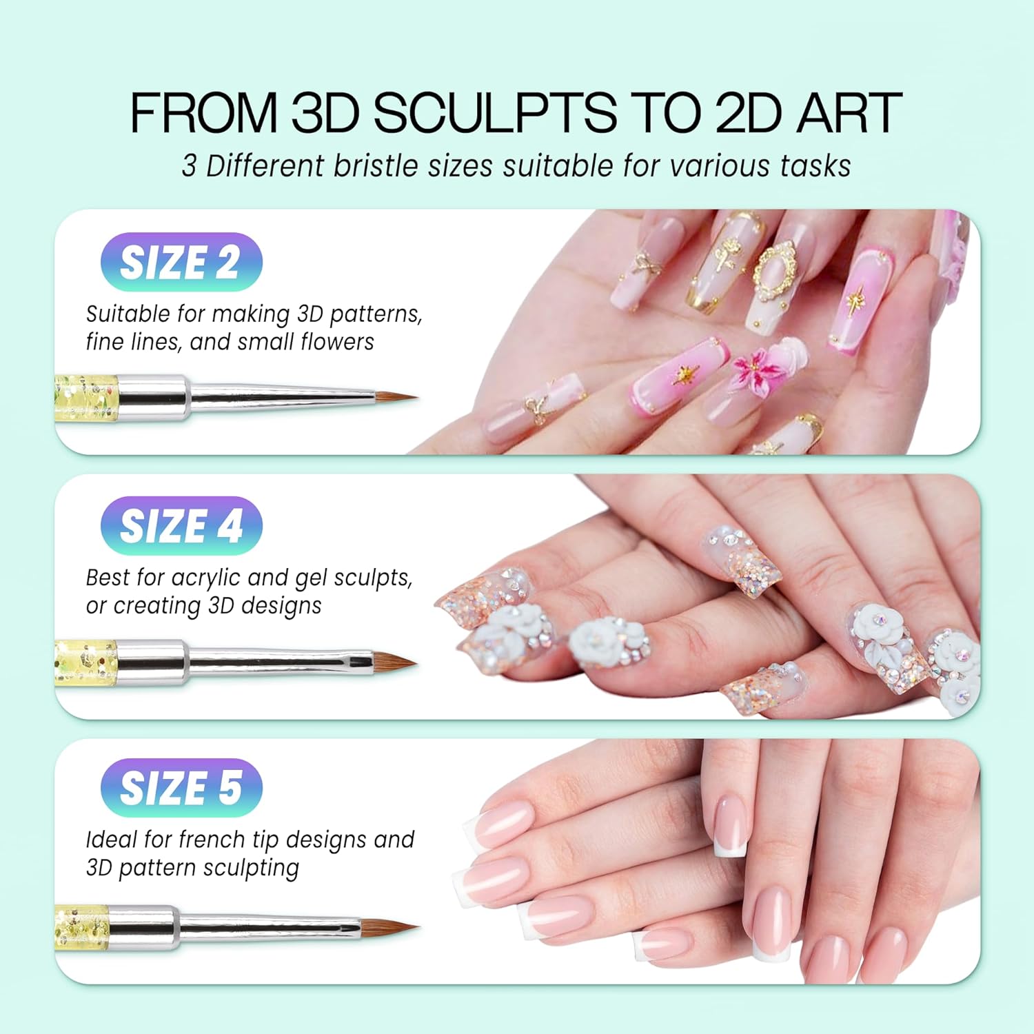 - [Uses] Comfortable to hold and easy to maneuver, this nail art brush is ideal for 3D nail art, florals, glitter pickup, shading, blending, and detailing on acrylic, gel, dip powder, and natural nails.