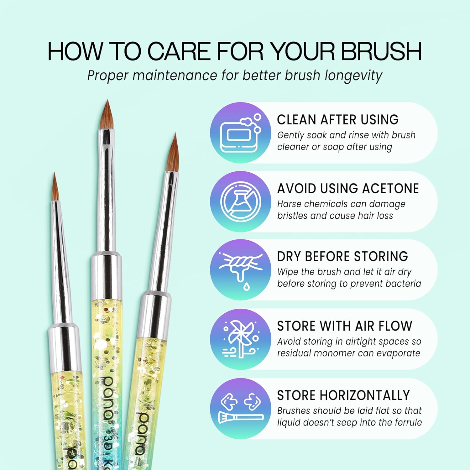 PANA 3D Kolinsky Nail Art Brush - Rainbow Glitter Handle, Size 2 - Acrylic Nail Art Sculpture Brush for Manicures Pedicure Salon Professional or Beginner