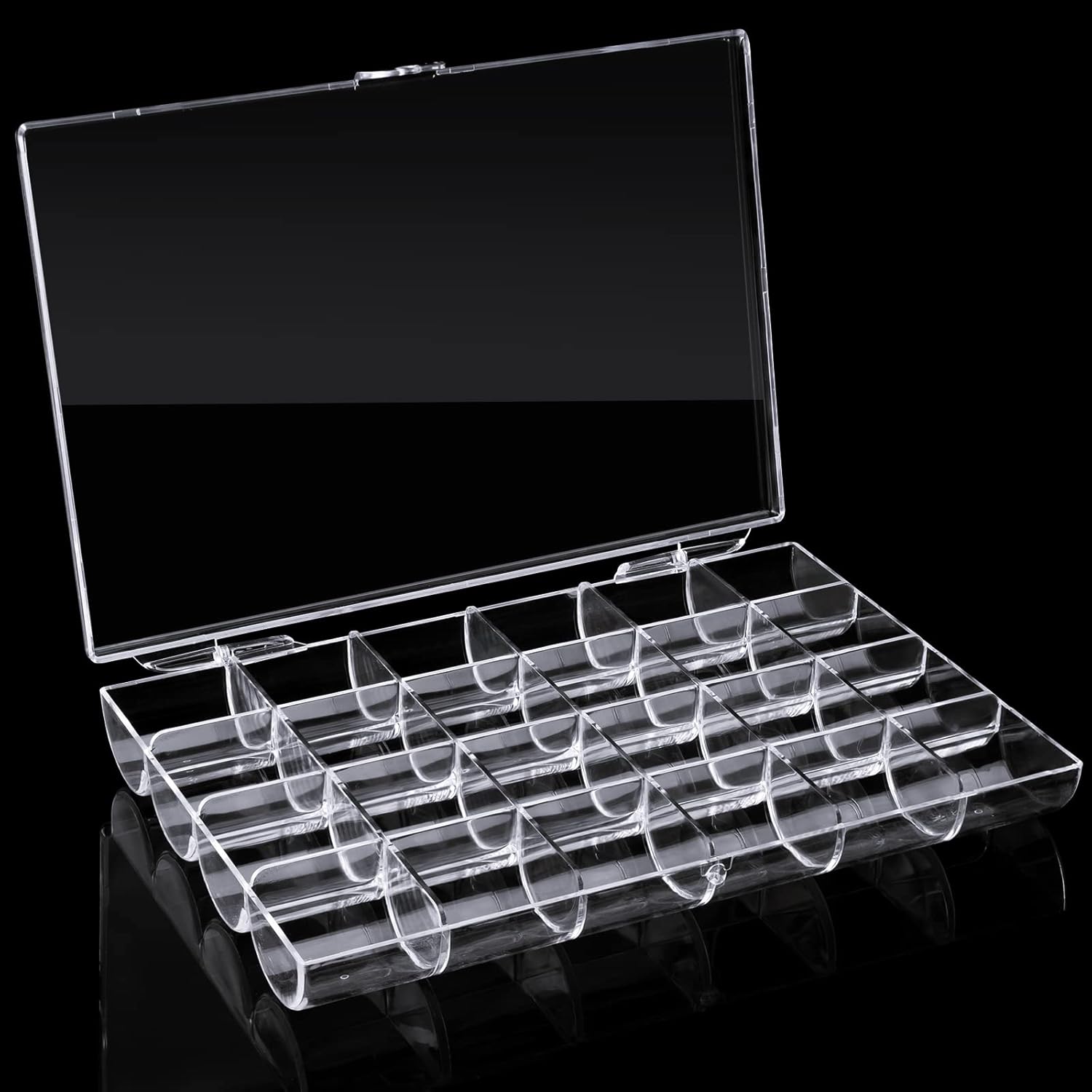 Noverlife 24 Grids Clear Plastic Organizer Box, Storage Container Jewelry Box, Empty Earring Storage Organizer Display Case, Transparent Plastic Nail Art Decorations Container for Bead Rings Earrings