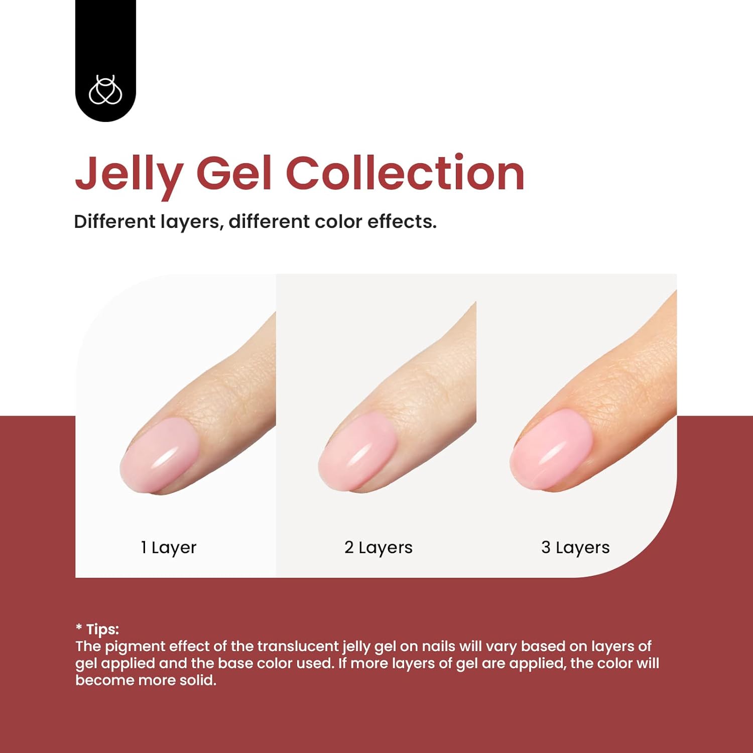 - [Beetles New Arrival]: We put together the top 6 trendiest new colors jelly gel nail polish for this year! We studied the upcoming color trends closely so you could display a colorful, stylish, modern manicure every time for holidays! This transparent jelly color gel is perfect for the nail lover with different skins.These ultimate monochrome nail concealers can be used to make various nail styles, such as french nails and swirl nails. Color Number: c538 C539 C540 C541 C542 C543