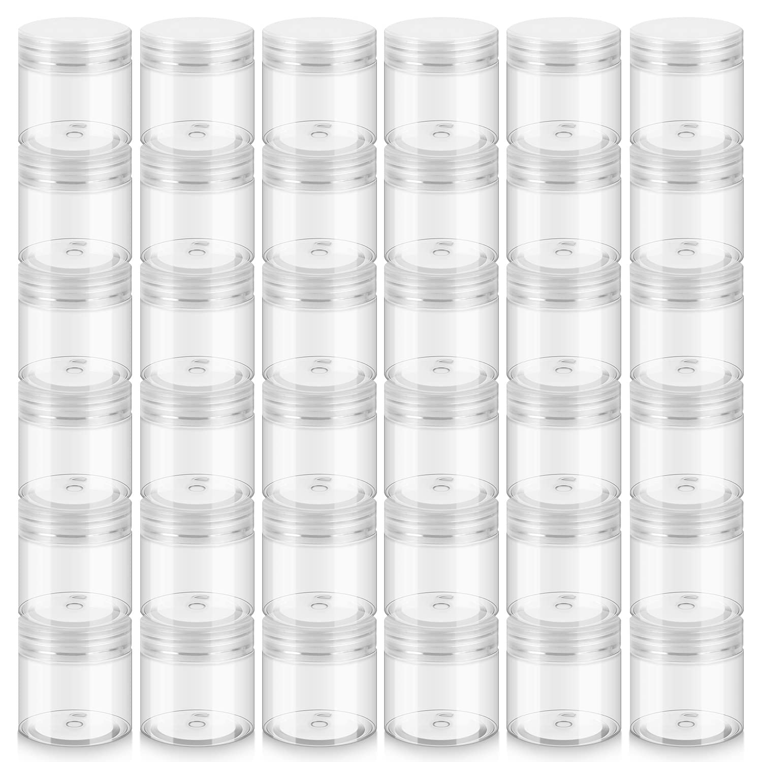 36 Pack 2 OZ Plastic Jars with Lids, BPA Free, Reusable, Refillable Transparent Cosmetic Containers for Bath Salts, Cosmetics, Powders, Beauty Product and Small Accessories - White