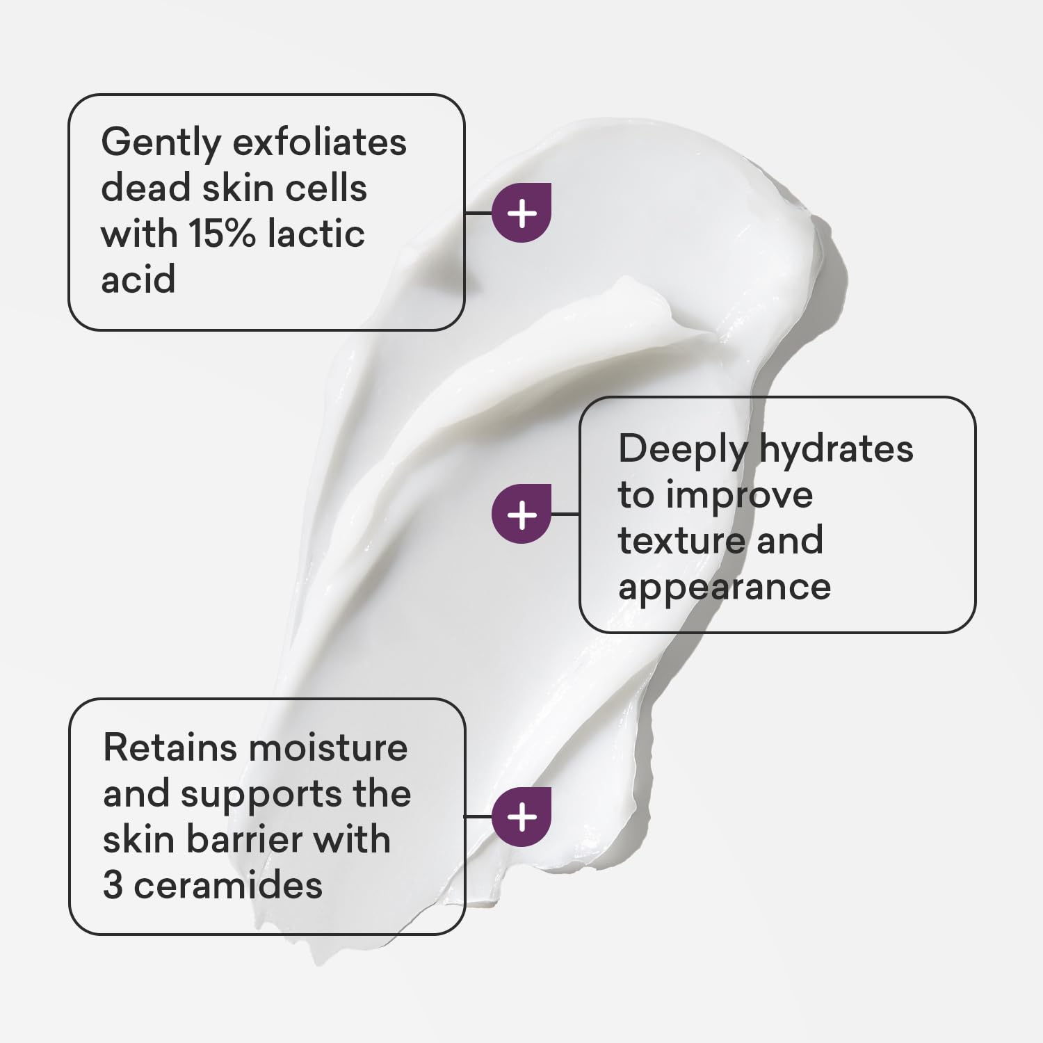 - Our formula: AmLactinโs crepe skin firming cream uses 15% lactic acid, a gentle yet effective AHA, to exfoliate dead skin cells and promote skin cell turnover; ceramides retain moisture and support the skin barrier to restore natural radiance