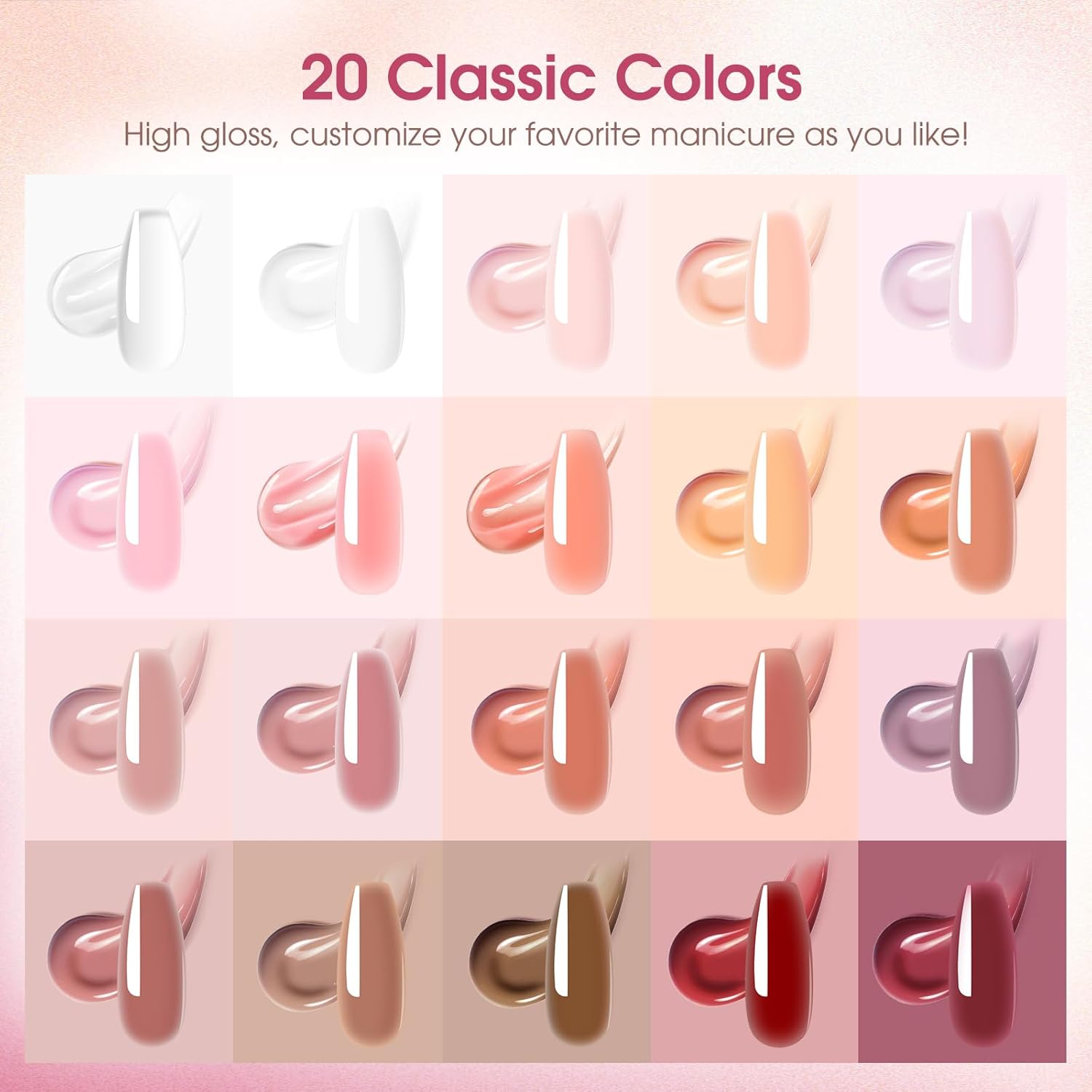 ROSALIND Poly Nail Gel Kit -20 Colors + 72Nail Art Accessories Kit, Nude Clear Poly Nail Gel Nail Kit Starter Kit with Big U V Lamp Slip Solution for Pink Nail Extensions Gel Dual Forms Nail Brush