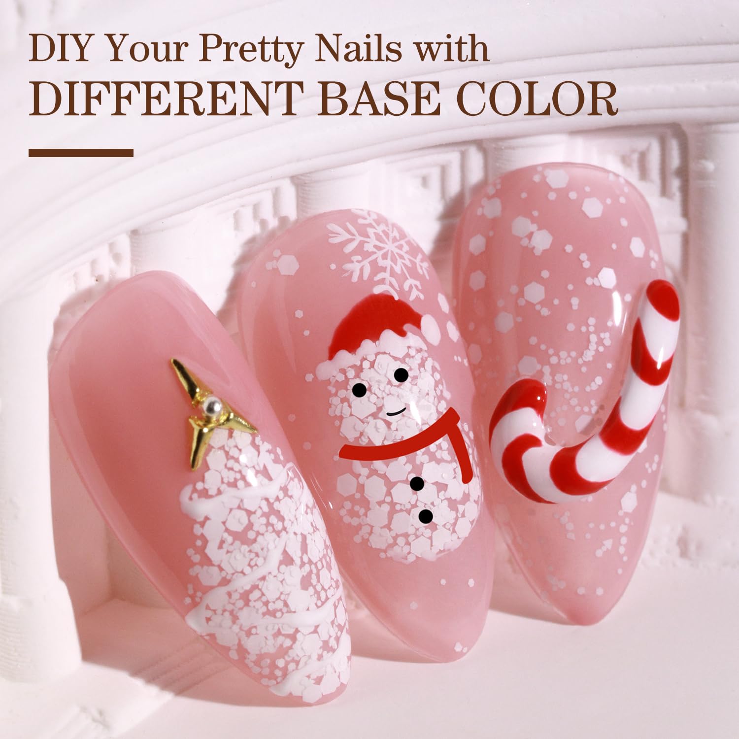 - Double Rhythm GEL POLISH: 1PC 15ML white snowflakes gel polish offers a hassle-free application, super cute snowflake gel will bring you a different style manicure. Must apply with Base Gel and Top Coat, all need at least 60s UV / LED Lamp cure.