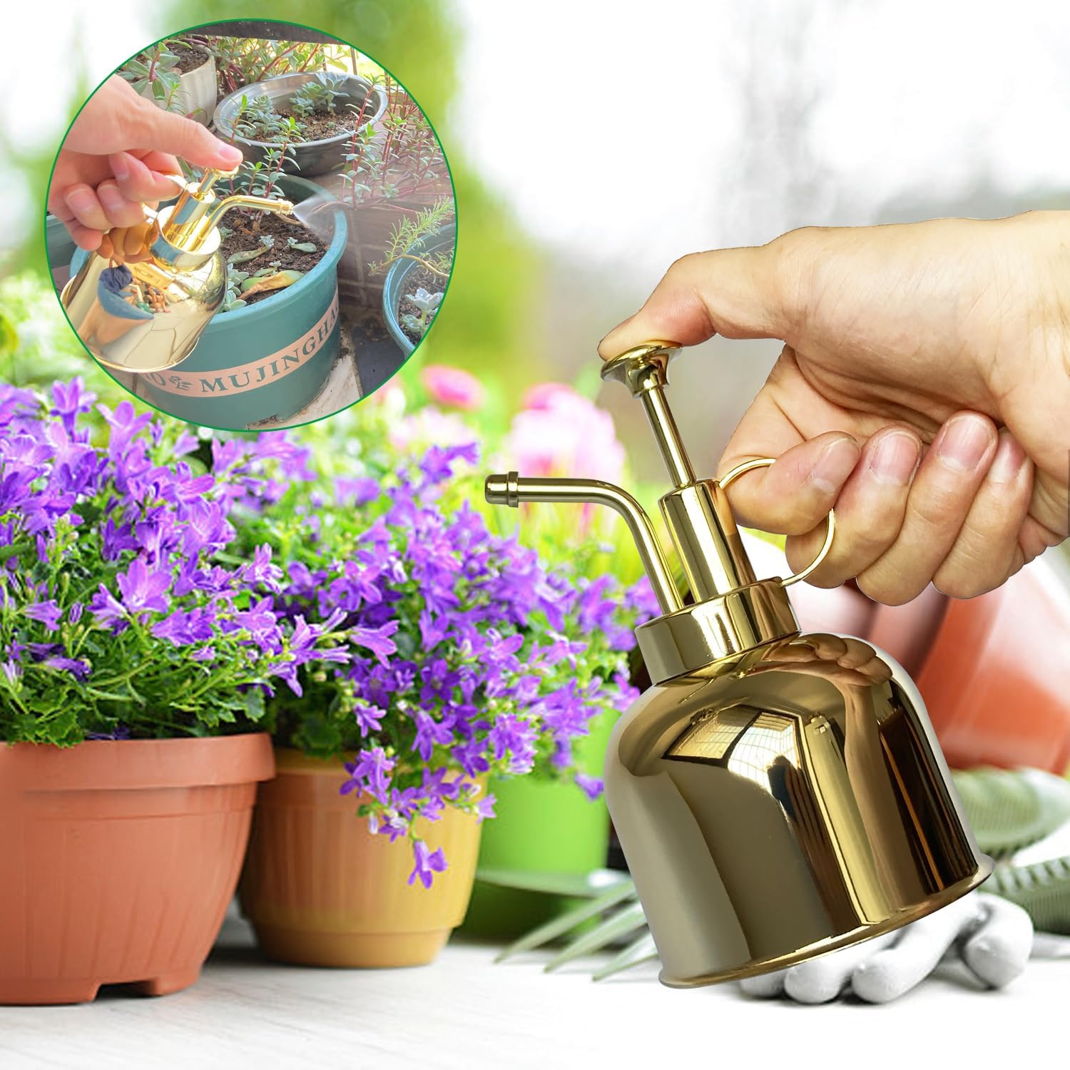 - [Decorative/Functional] This small spray can is perfect for watering indoor and outdoor plants, orchid plants, bonsai pots, herbs or potted plants. Mist and moisturize indoor potted plants. The product is also available in a variety of beautiful and vibrant color options, with crafts to achieve a decorative garden effect.