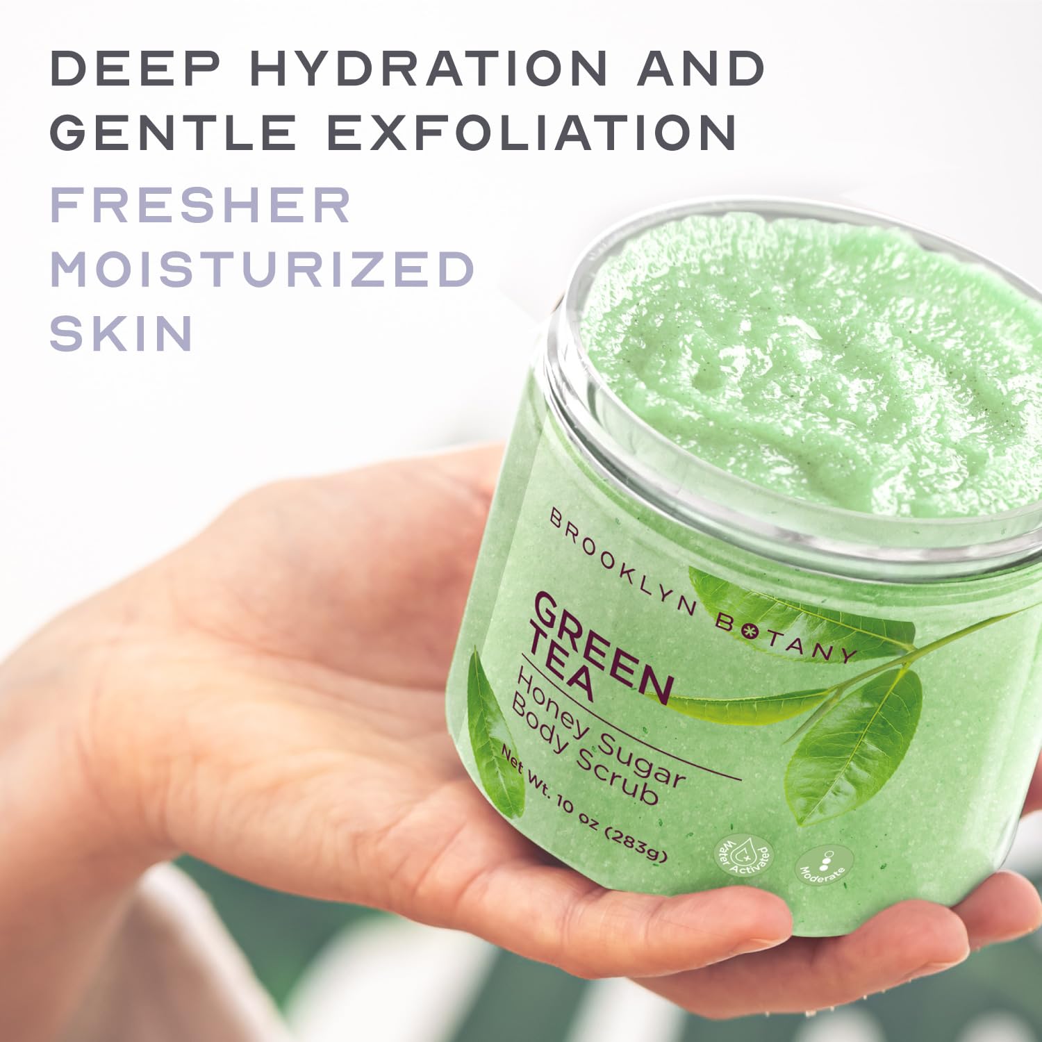 - REFRESHING SCENT – Enjoy the herbal and refreshing scent of this green tea body scrub that will create an enjoyable and invigorating skin care experience. Use as a shower and bath scrub for gentle exfoliation and ultimate hydration.