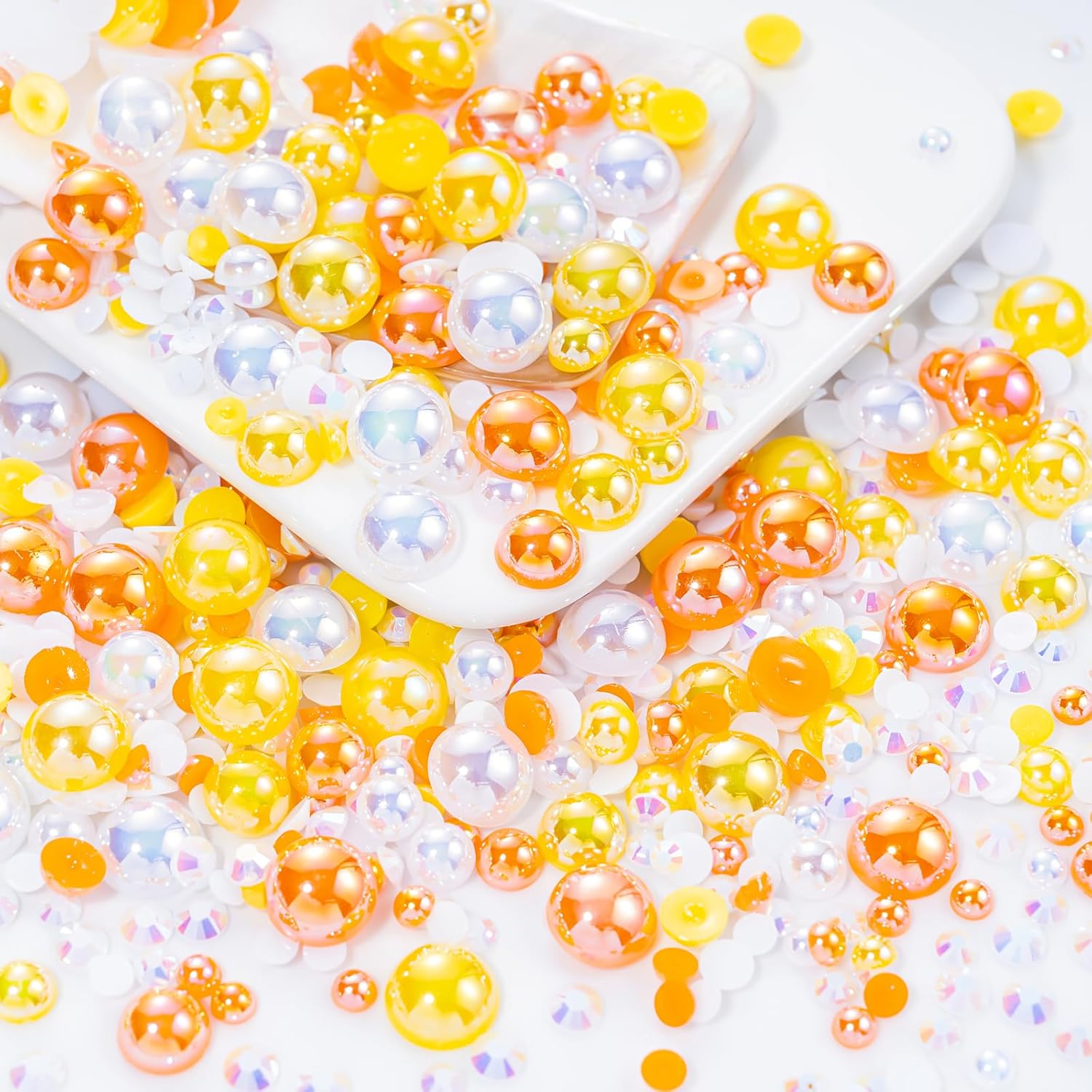 60g Orange Citrine Pearls Rhinestones for Crafts Mixed Size 3mm-10mm AB Color Round Half Pearls Flatback Pearl Beads and Resin Rhinestones Set for Face Art with Glue