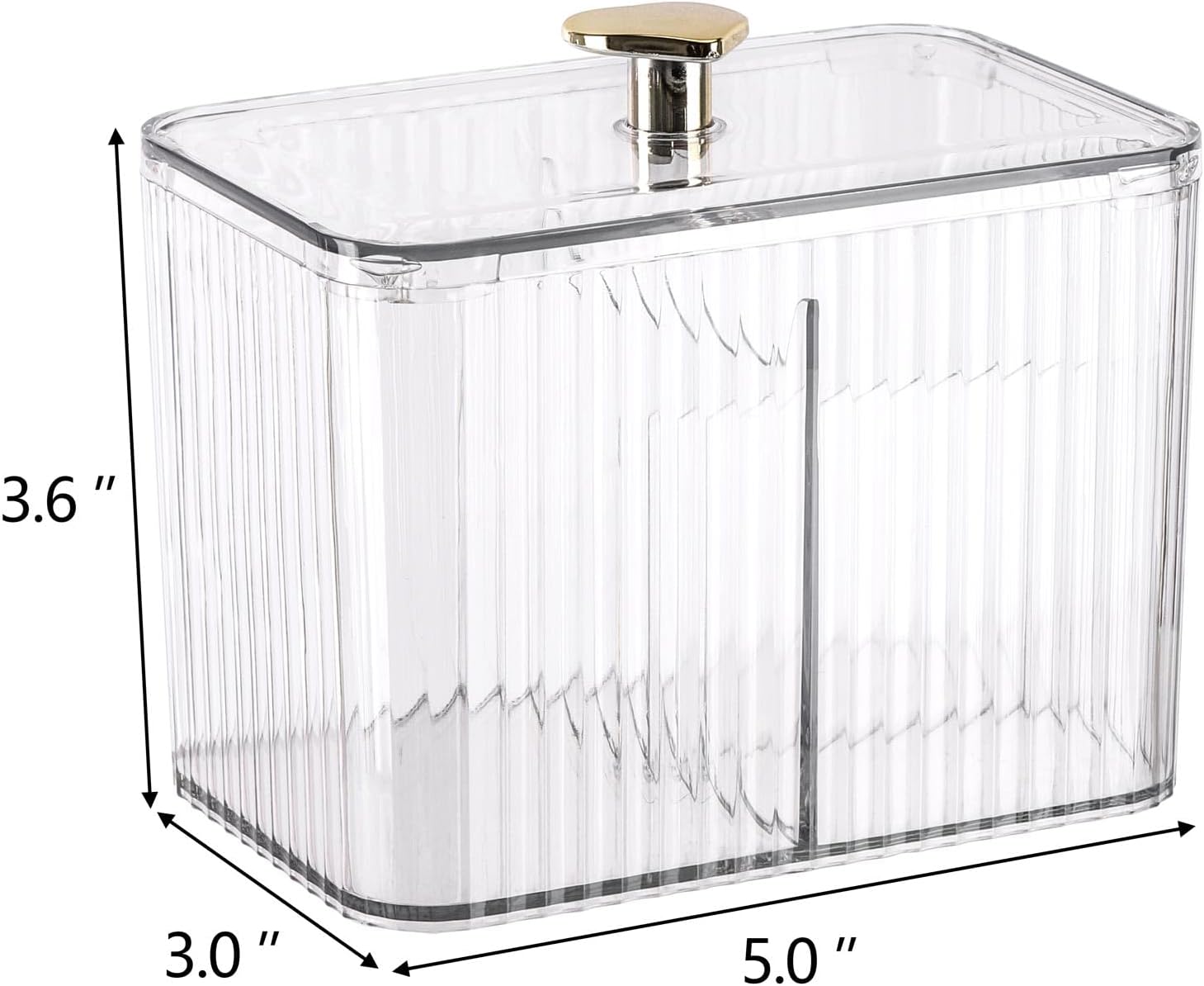 Tbestmax Qtip Holder Dispenser 3-Section Clear Bathroom Organizer Jar 3 Grids Cotton Swab/Pad/Ball Holder Container Cosmetics Storage for Vanity