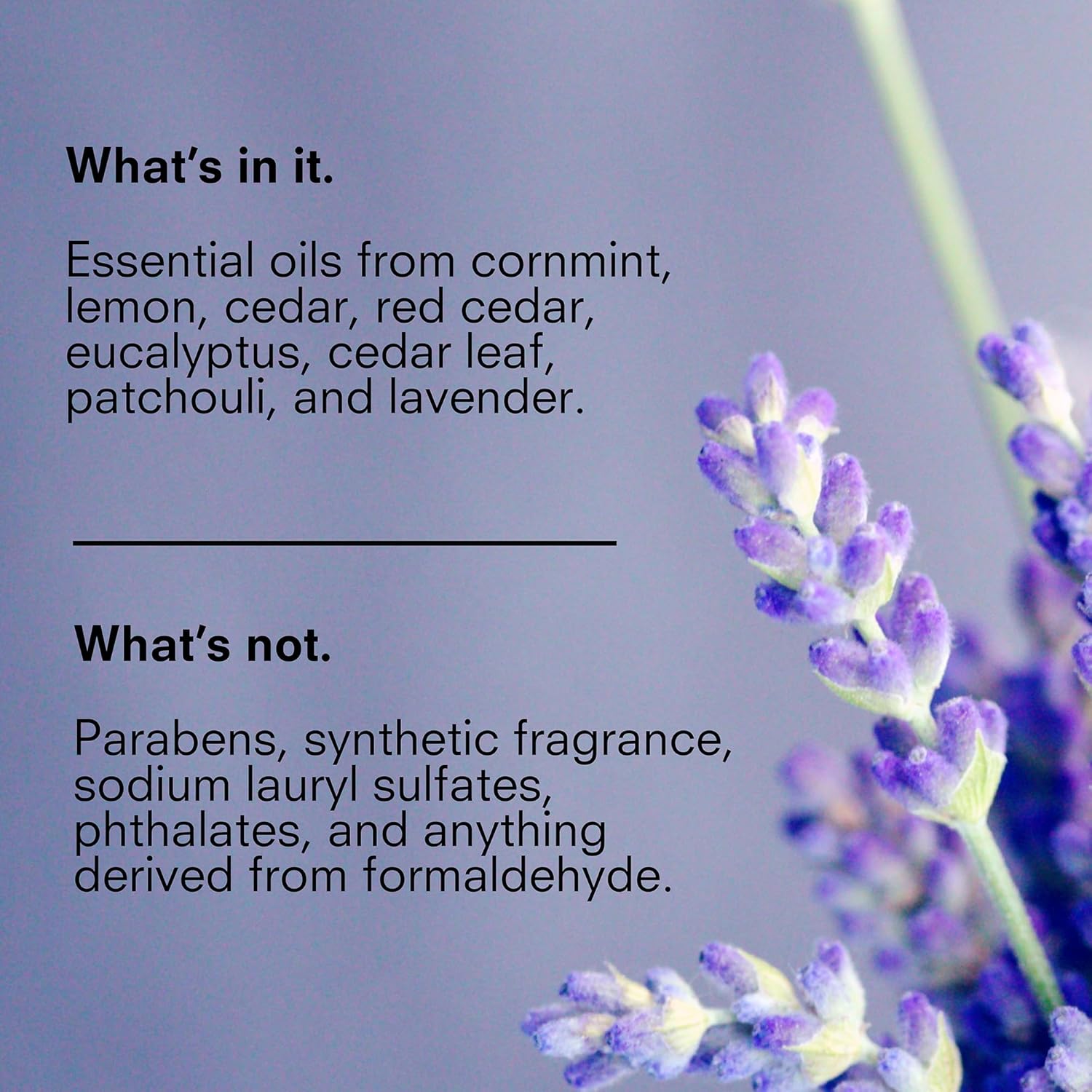 - Quick Absorption - Absorbs quickly and leaves skin feeling smooth and supple with balancing notes of lavender and cedar.