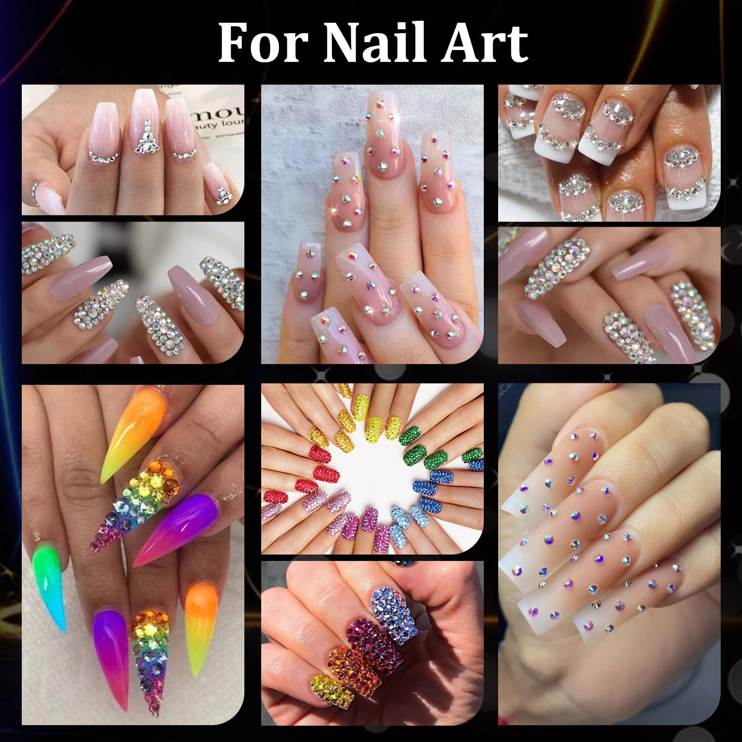 - 💎SPARKLING BRILLIANCE FOR ALL: The dazzling nail stones can decorate natural or acrylic nails, suitable for nail art beginners, hobbyists, nail tech, and professional manicure salons. We offer a wide size range, from 2mm to 5mm, that is perfect for your DIY nail art projects. You can get creative nail art shapes and patterns by mixing sizes and colors. Besides, the gems can be also used for eye or face makeup and crafting, such as bedazzling clothes, shoes, tumblers, and cards.